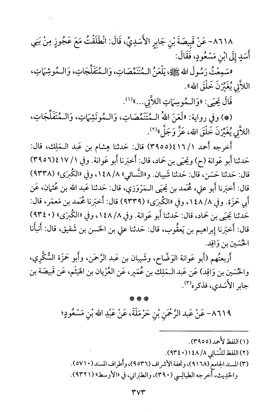 (¬٣) المسند الجامع (٩١٦٨)، وتحفة الأشراف (٩٥٣٦)، وأطراف المسند (٥٧١٠).