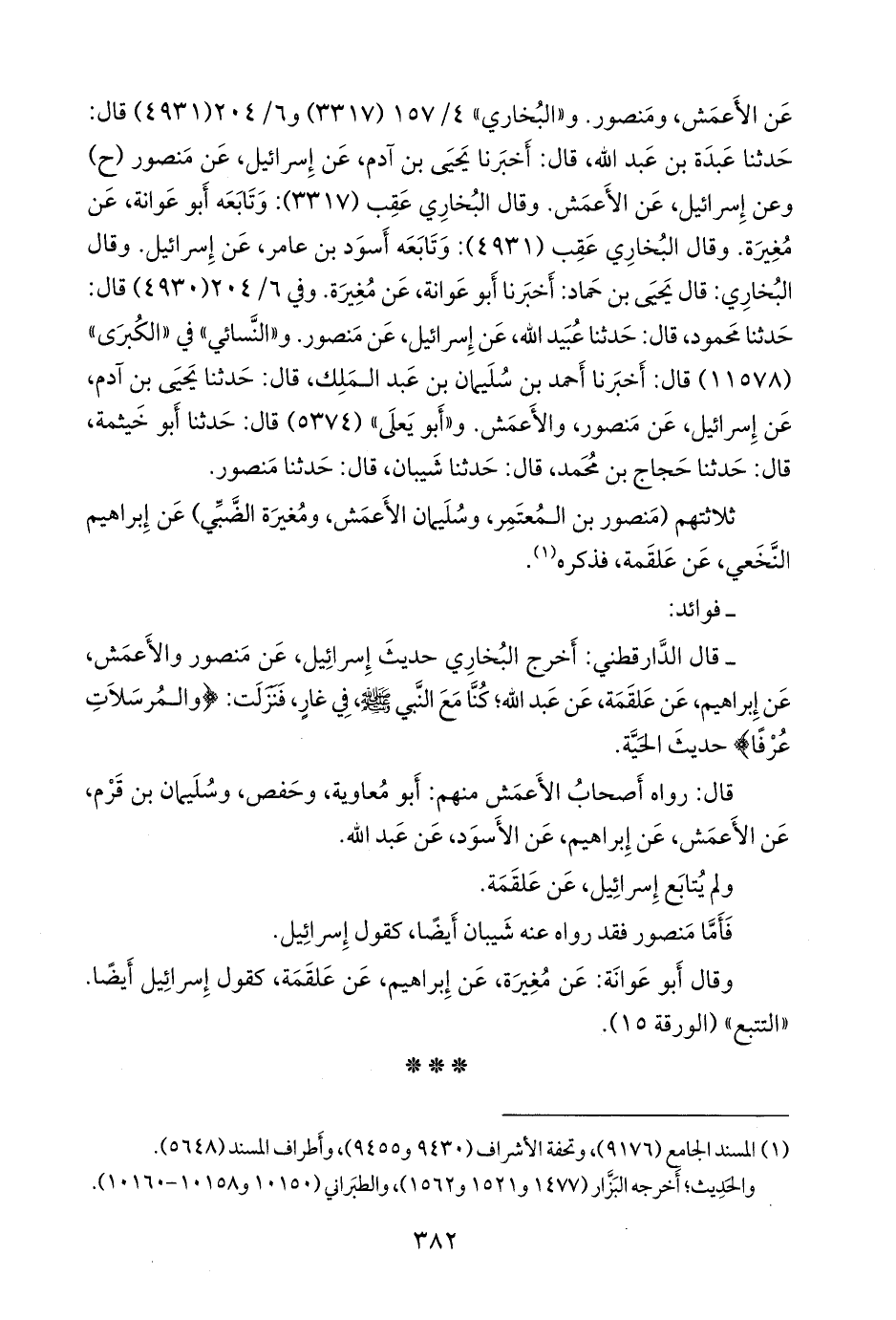 ثلاثتهم (منصور بن المُعتَمِر، وسليمان الأعمش، ومغيرة الضبي) عن إبراهيم النَّخَعي، عن علقمة، فذكره (¬١).
