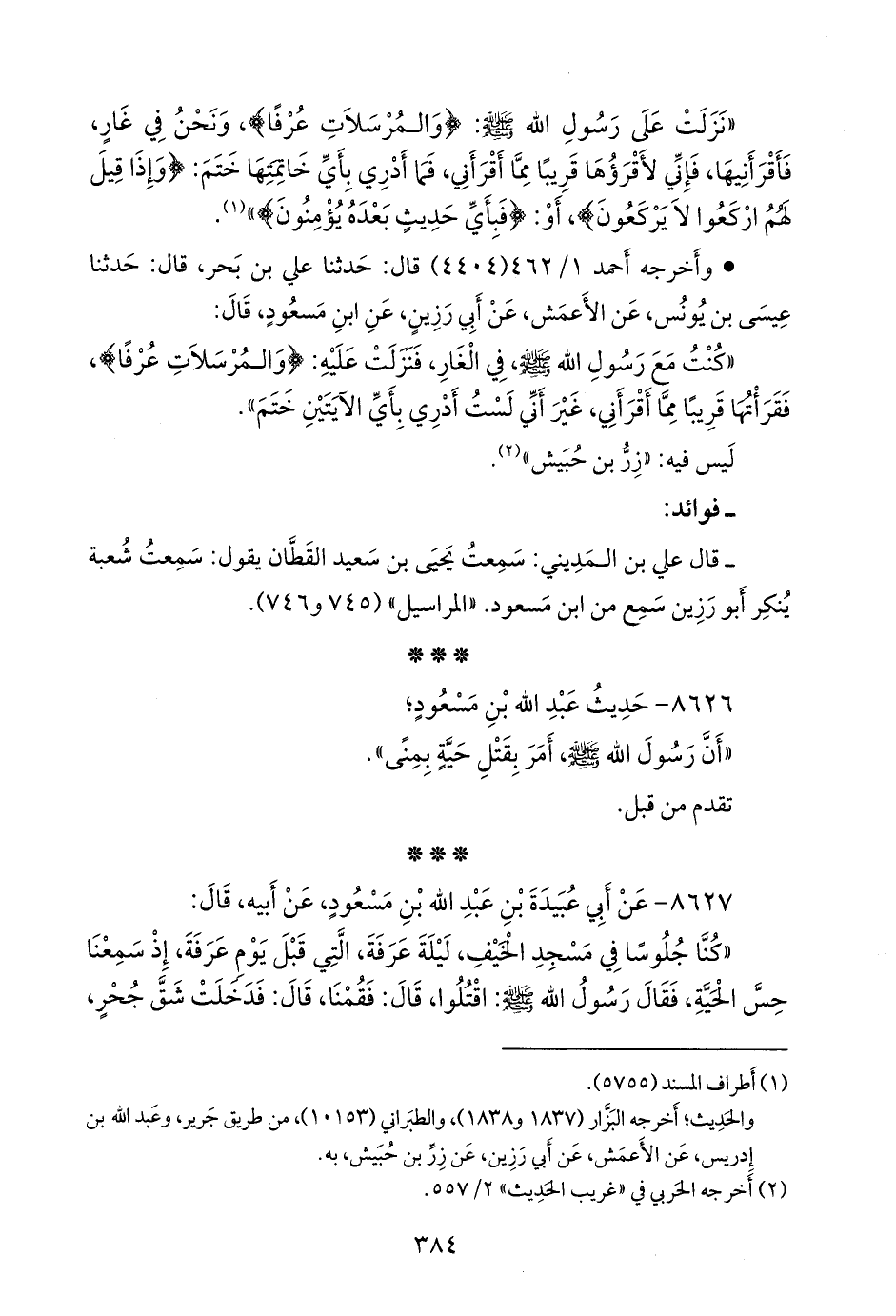 (¬٢) المسند الجامع (٩١٧٤)، وتحفة الأشراف (٩٦٣٠)، وأطراف المسند (٥٧٧٦).