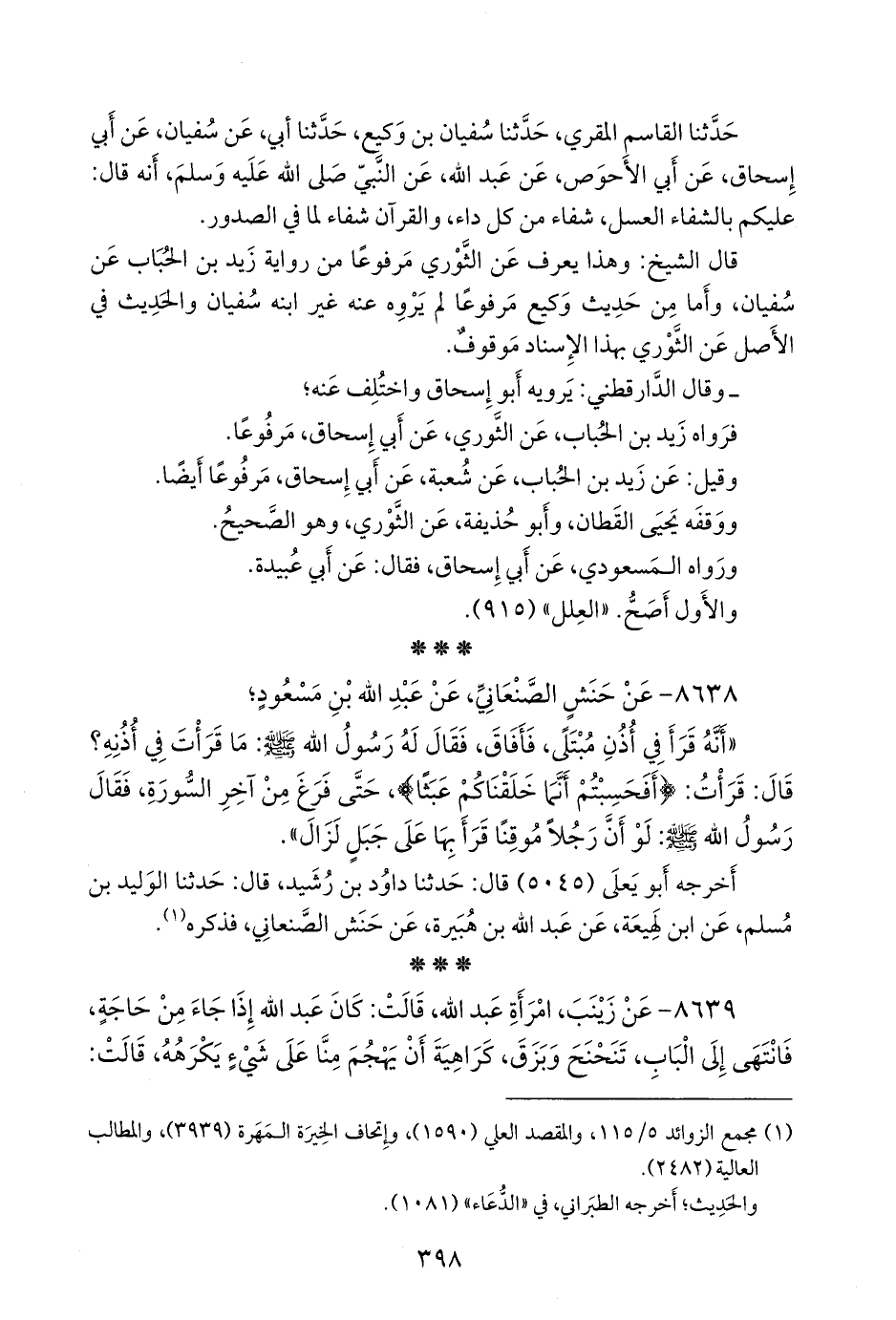 (¬١) مَجمَع الزوائد ٥/ ١١٥، والمقصد العَلي (١٥٩٠)، وإتحاف الخِيرَة المَهَرة (٣٩٣٩)، والمطالب العالية (٢٤٨٢).
