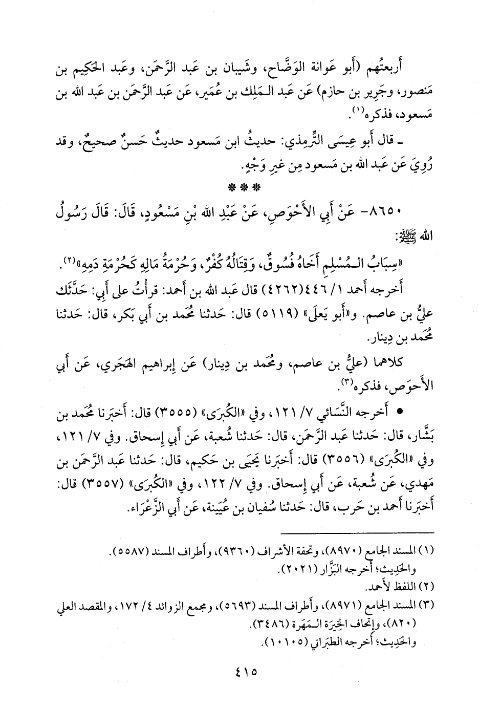 ٨٦٥٠ - عن أبي الأحوص، عن عبد الله بن مسعود، قال: قال رسول الله صَلى الله عَليه وسَلم: