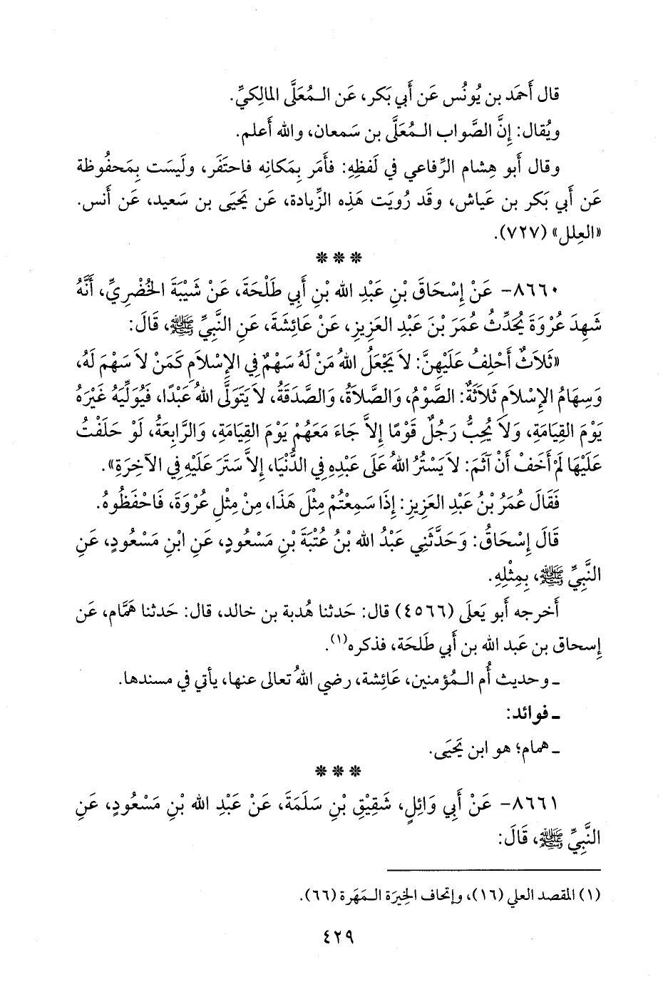 (¬١) المقصد العَلي (١٦)، وإتحاف الخِيرَة المَهَرة (٦٦).