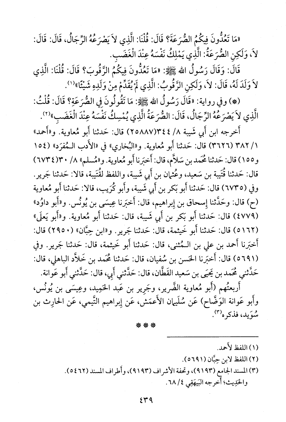 و «مسلم» ٨/ ٣٠ (٦٧٣٤) قال: حدثنا قتيبة بن سعيد، وعثمان بن أبي شيبة، واللفظ لقتيبة، قالا: حدثنا جَرير. وفي (٦٧٣٥) قال: حدثنا أَبو بكر بن أبي شيبة، وأَبو كُريب، قالا: حدثنا أَبو معاوية (ح) قال: وحدثنا إسحاق بن إبراهيم، قال: أخبرنا عيسى بن يونس. و «أَبو داود» (٤٧٧٩) قال: حدثنا أَبو بكر بن أبي شيبة، قال: حدثنا أَبو معاوية. و «أَبو يَعلى» (٥١٦٢) قال: حدثنا أَبو خيثمة، قال: حدثنا جَرير. و «ابن حِبَّان» (٢٩٥٠) قال: أخبرنا أحمد بن علي بن المثنى، قال: حدثنا أَبو خيثمة، قال: حدثنا جَرير. وفي (٥٦٩١) قال: أخبرنا الحسن بن سفيان، قال: حدثنا محمد بن خلاد الباهلي، قال: حدثني محمد بن يحيى بن سعيد القطان، قال: حدثني أبي، قال: حدثني أَبو عَوانة.
