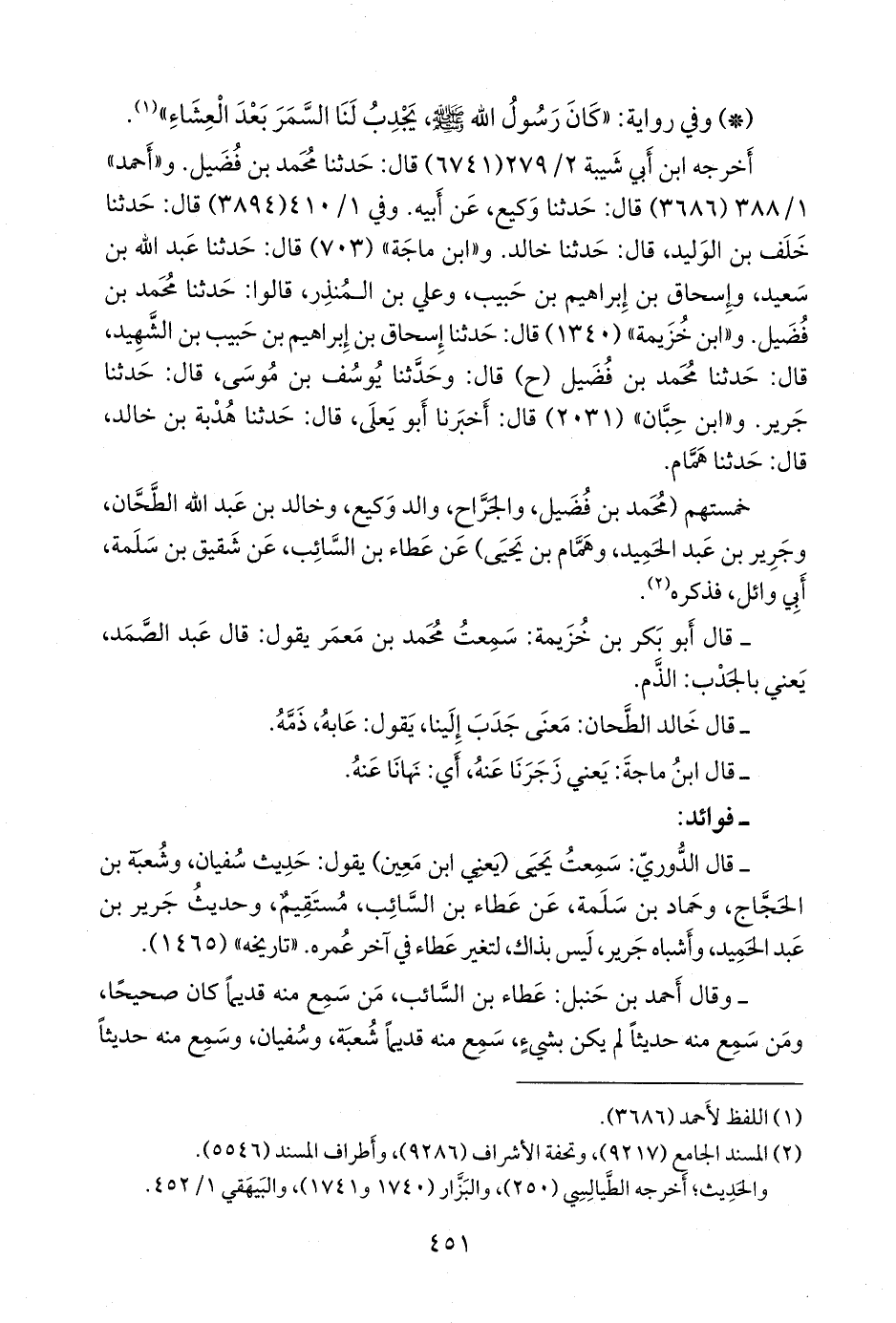 خمستهم (محمد بن فضيل، والجراح والد وكيع، وخالد بن عبد الله الطحان، وجرير بن عبد الحميد، وهمام بن يحيى) عن عطاء بن السائب، عن شقيق بن سلمة أبي وائل، فذكره (¬١).