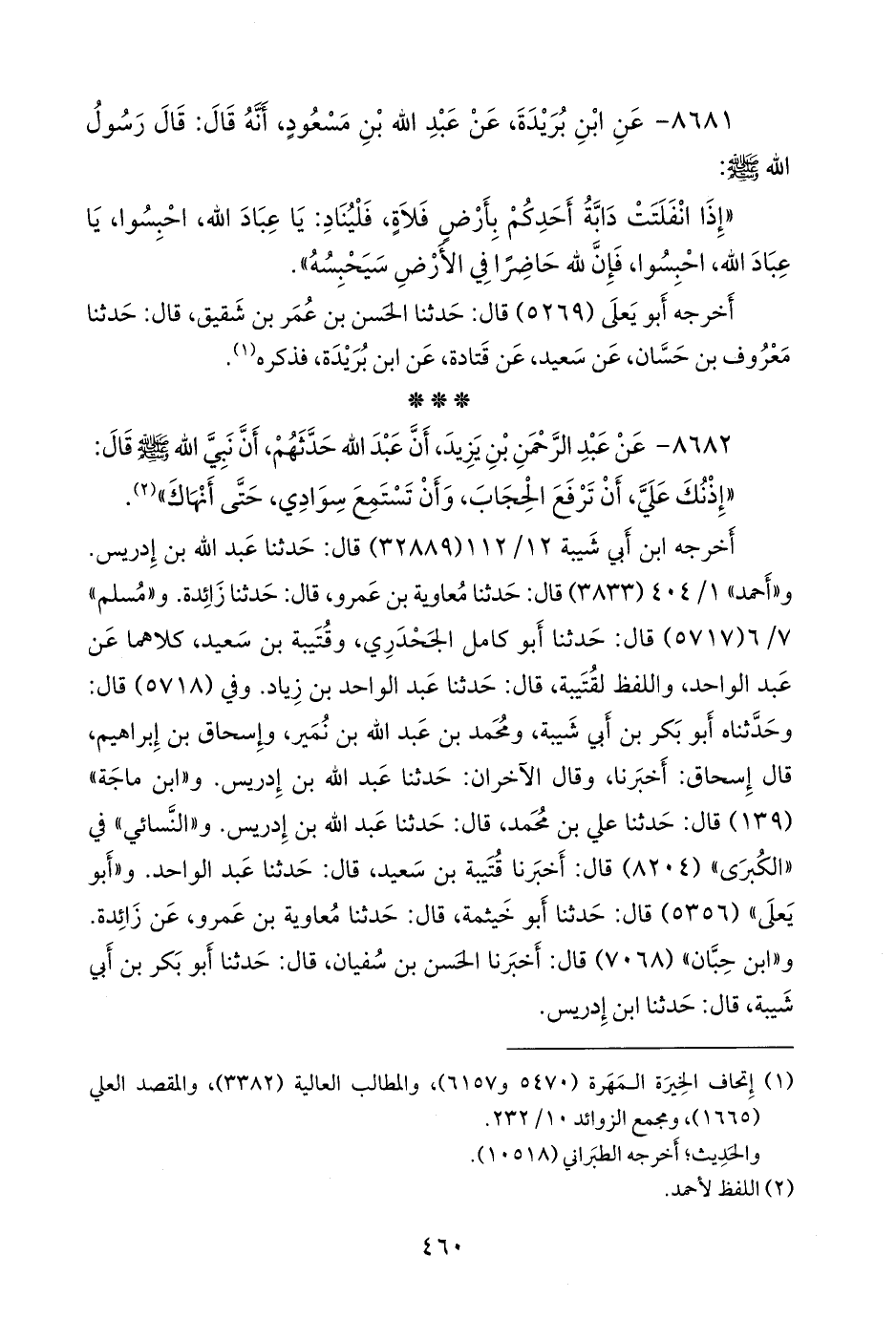 (¬٢) المسند الجامع (٩٢٢٤)، وتحفة الأشراف (٩٣٨٨)، وأطراف المسند (٥٤٣٤ و ٥٦٠٩)، وإتحاف الخِيرَة المَهَرة (٥٥٦٩).