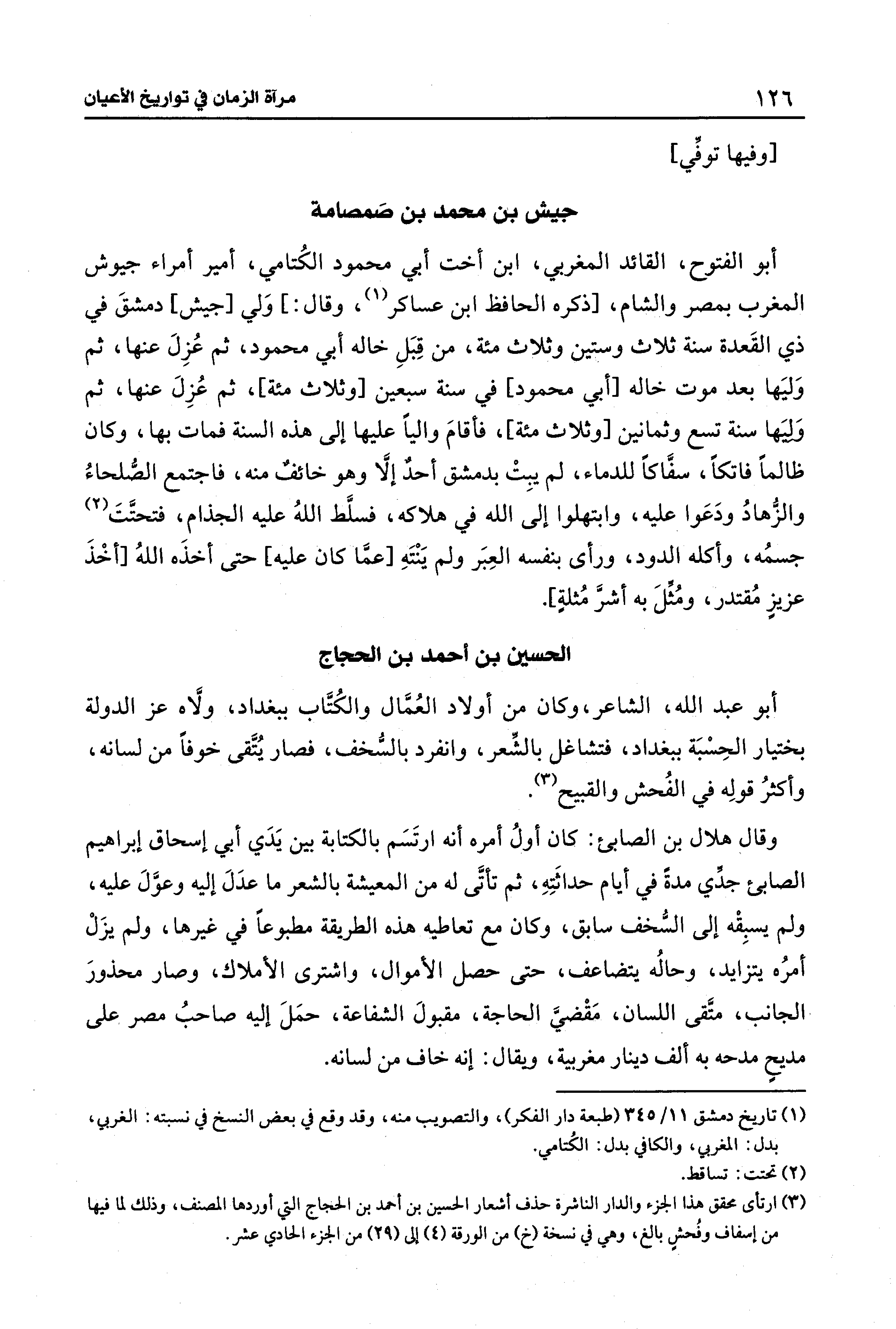 (¬3) ارتأى محقق هذا الجزء والدار الناشرة حذف أشعار الحسين بن أحمد بن الحجاج التي أوردها المصنف، وذلك لما فيها من إسفاف وفُحشٍ بالغ، وهي في نسخة (خ) من الورقة (4) إلى (29) من الجزء الحادي عشر.