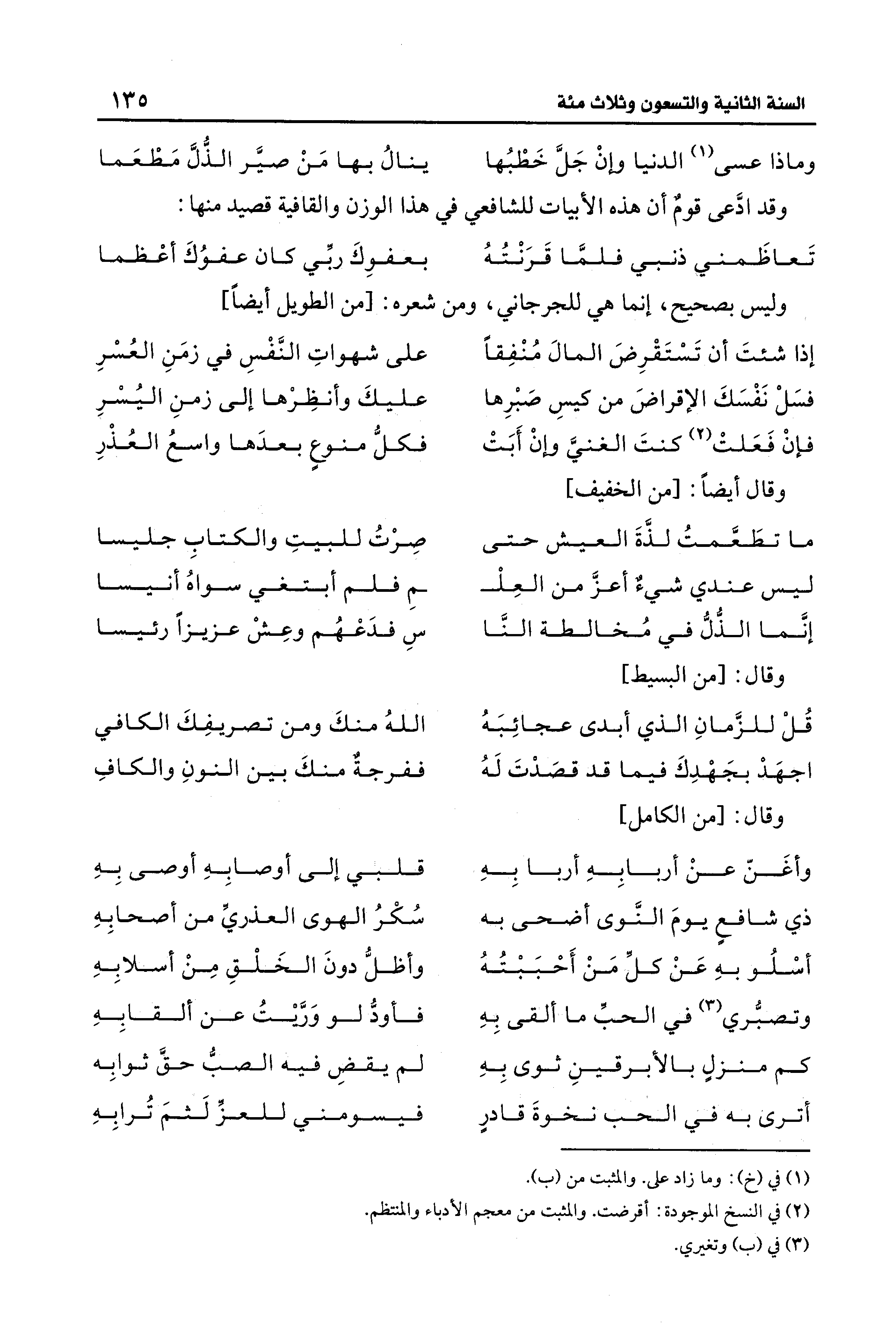 وقد ادَّعى قومٌ أن هذه الأبيات للشافعي في هذا الوزن والقافية قصيد منها: