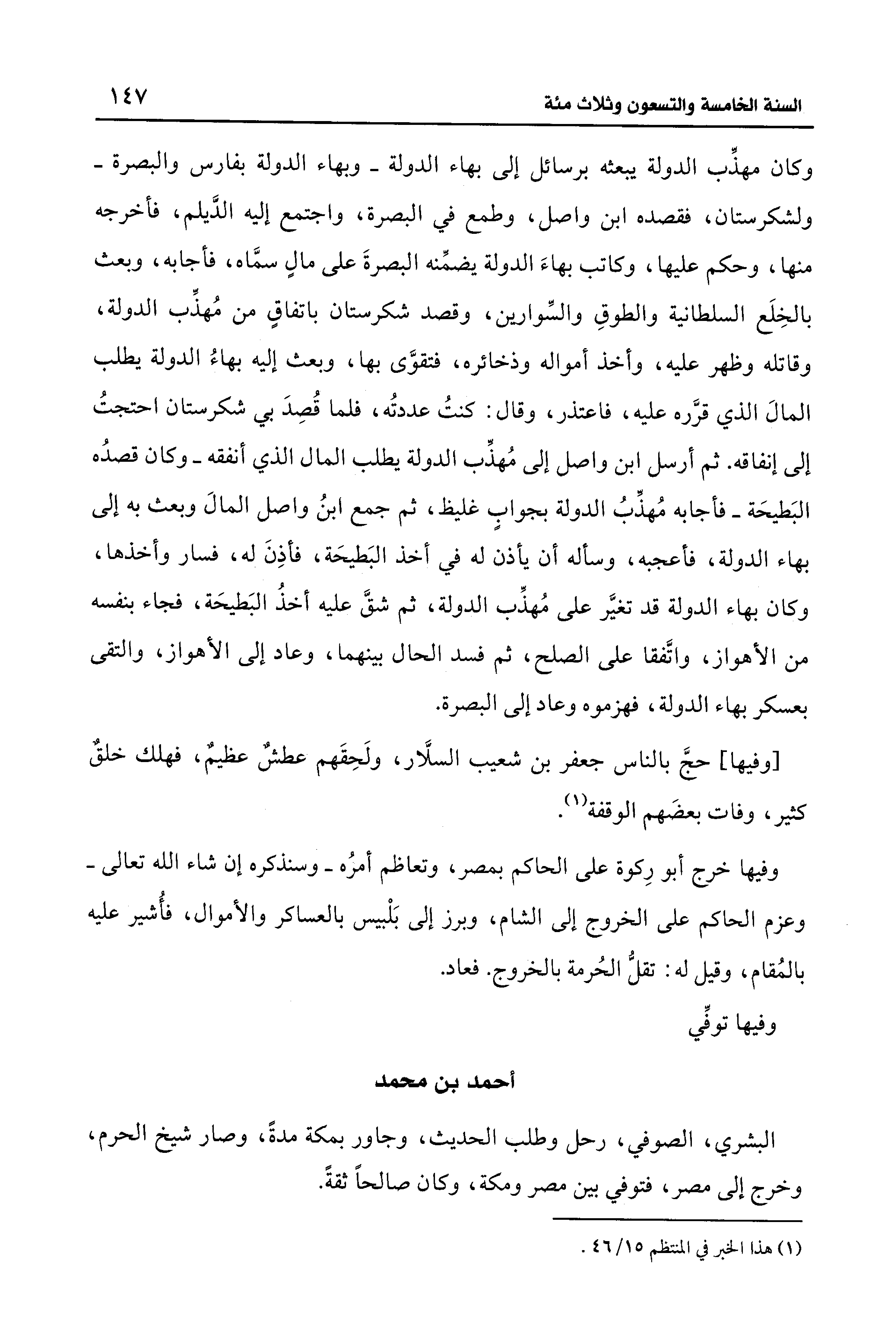 (¬1) هذا الخبر في المنتظم 15/ 46.