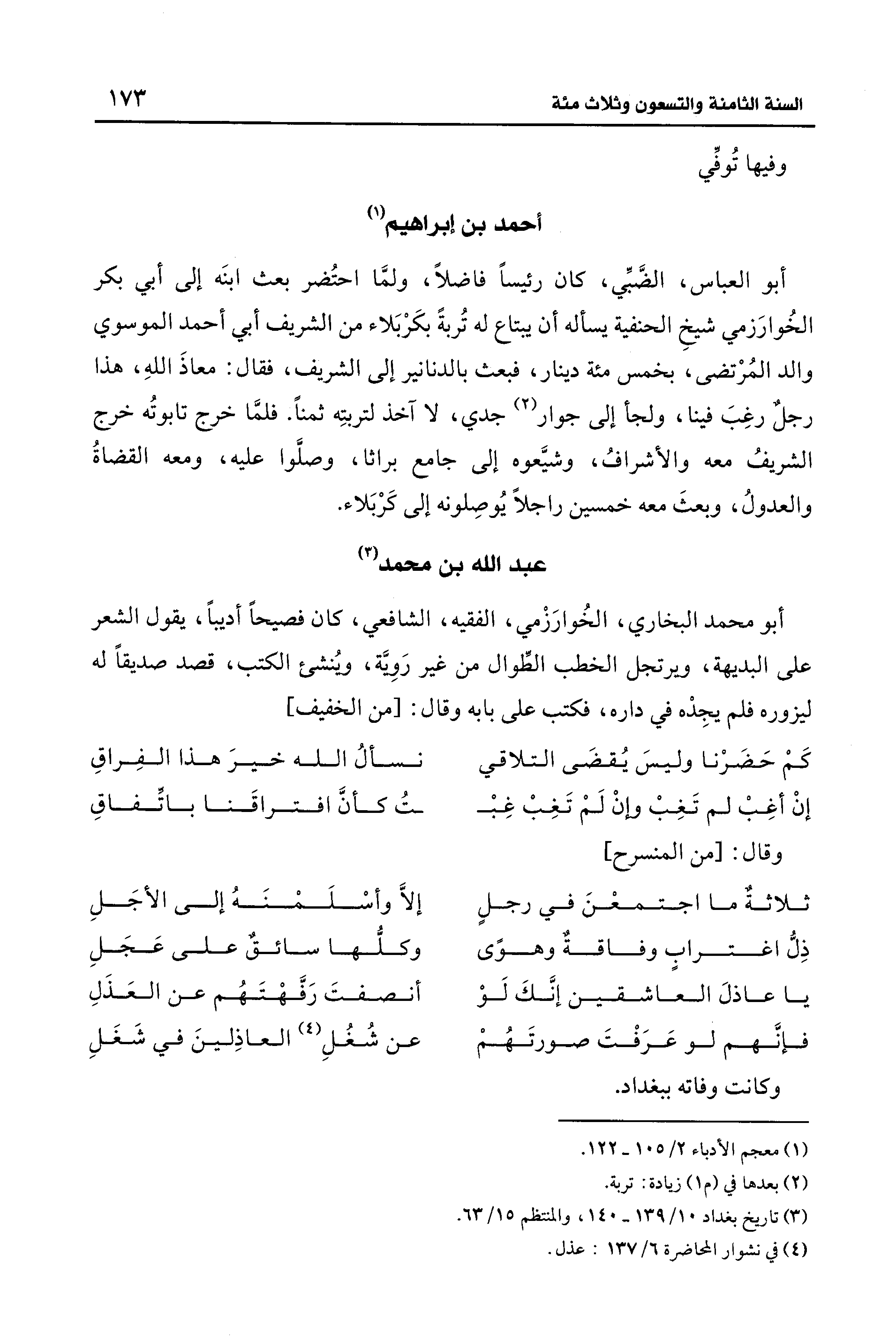 (¬3) تاريخ بغداد 10/ 139 - 140، والمنتظم 15/ 63.