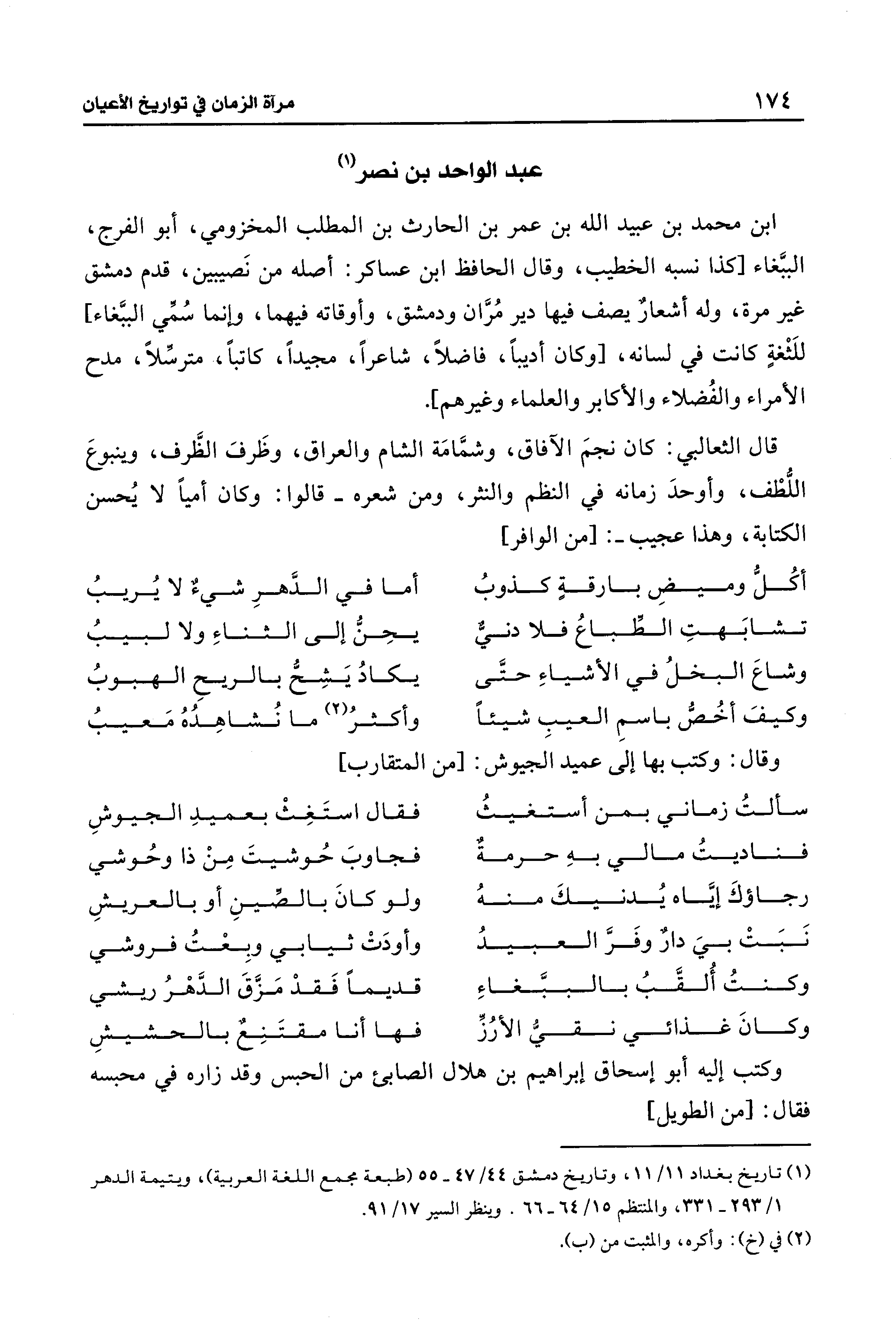 (¬1) تاريخ بغداد 11/ 11، وتاريخ دمشق 44/ 47 - 55 (طبعة مجمع اللغة العربية)، ويتيمة الدهر 1/ 293 - 331، والمنتظم 15/ 64 - 66. وينظر السير 17/ 91.