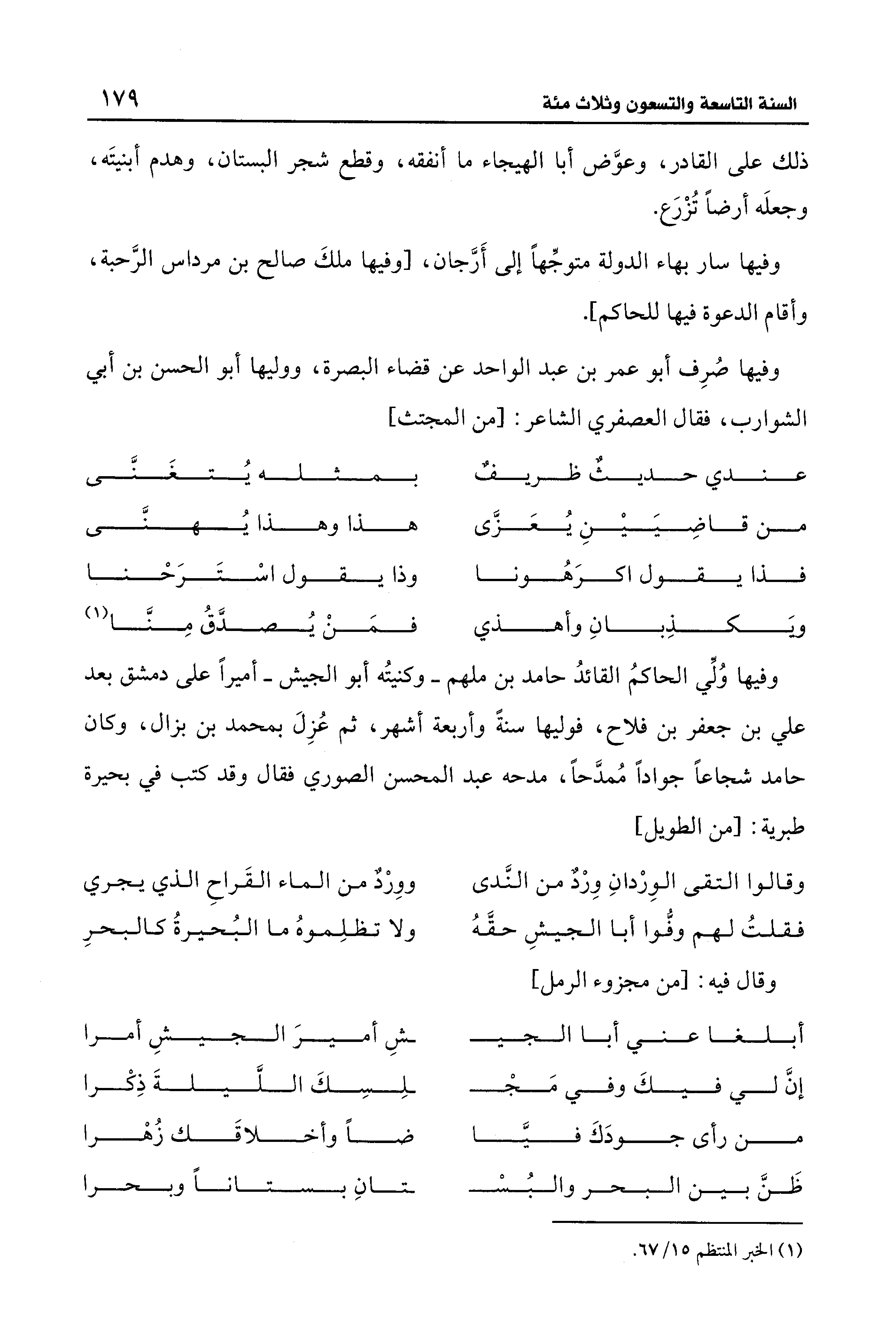 ذلك على القادر، وعوَّض أبا الهيجاء ما أنفقه، وقطع شجر البستان، وهدم أبنبتَه، وجعلَه أرضًا تُزْرَع.