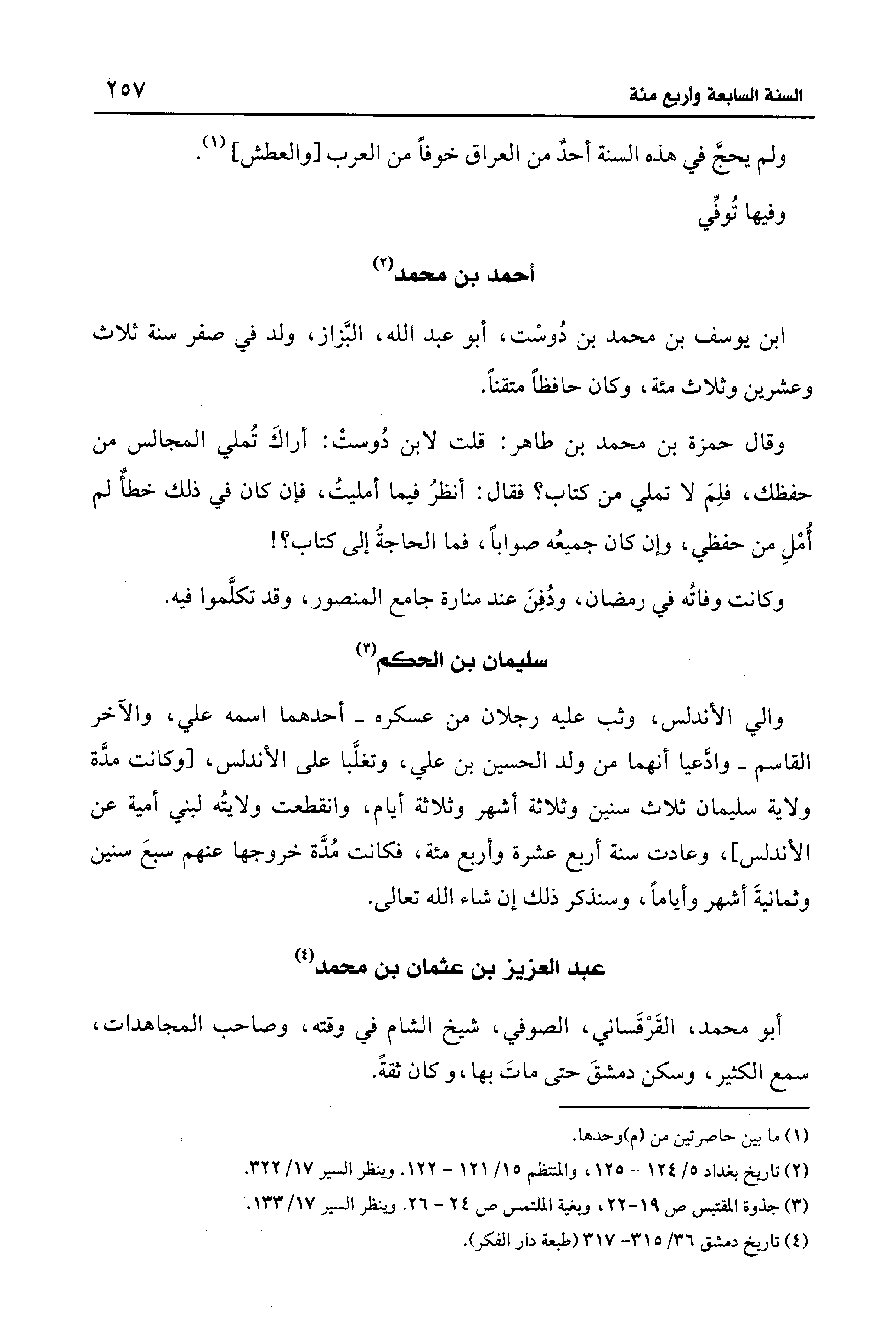 (¬2) تاريخ بغداد 5/ 124 - 125، والمنتظم 15/ 121 - 122. وينظر السير 17/ 322.