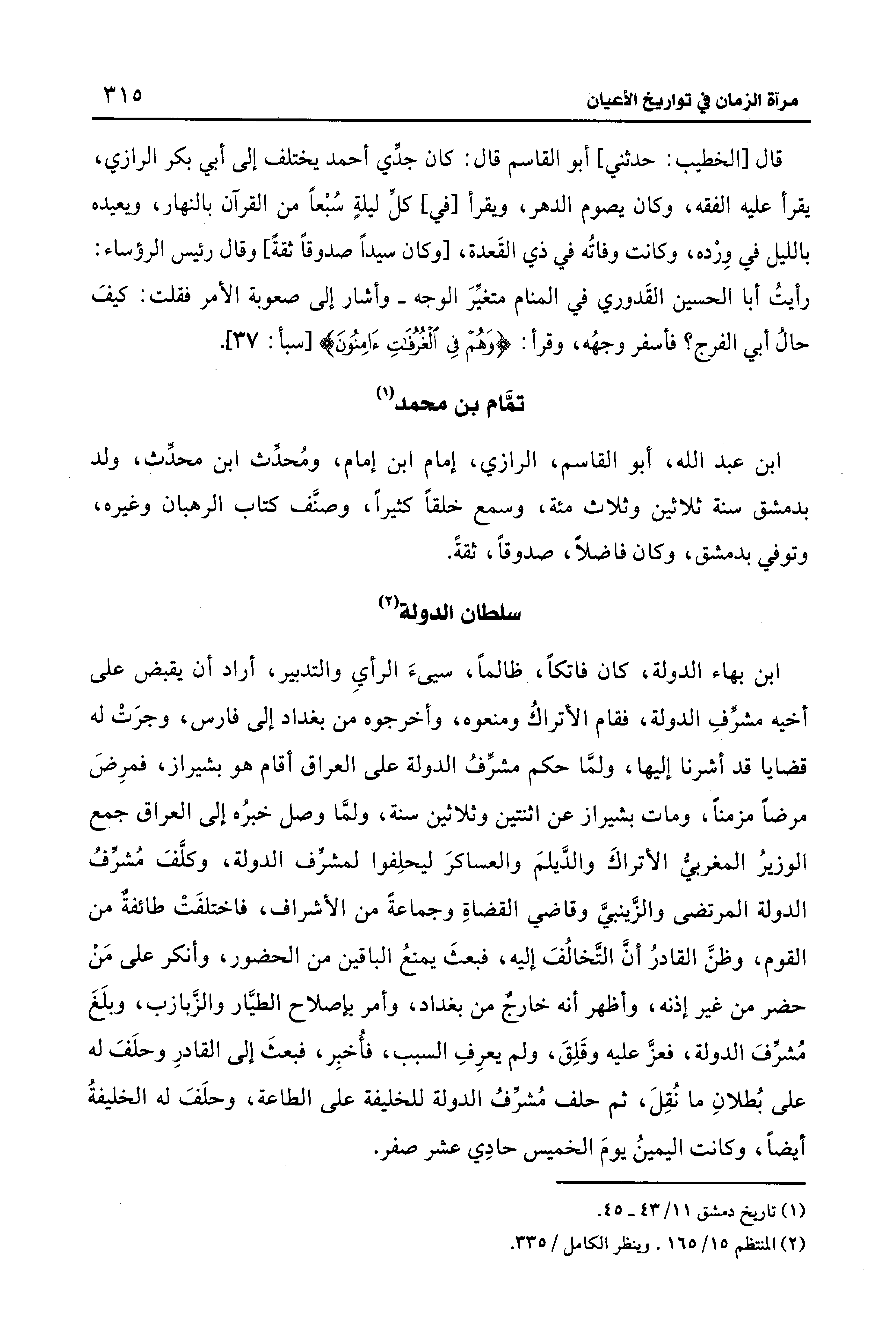 (¬2) المنتظم 15/ 165. وينظر الكامل / 335.