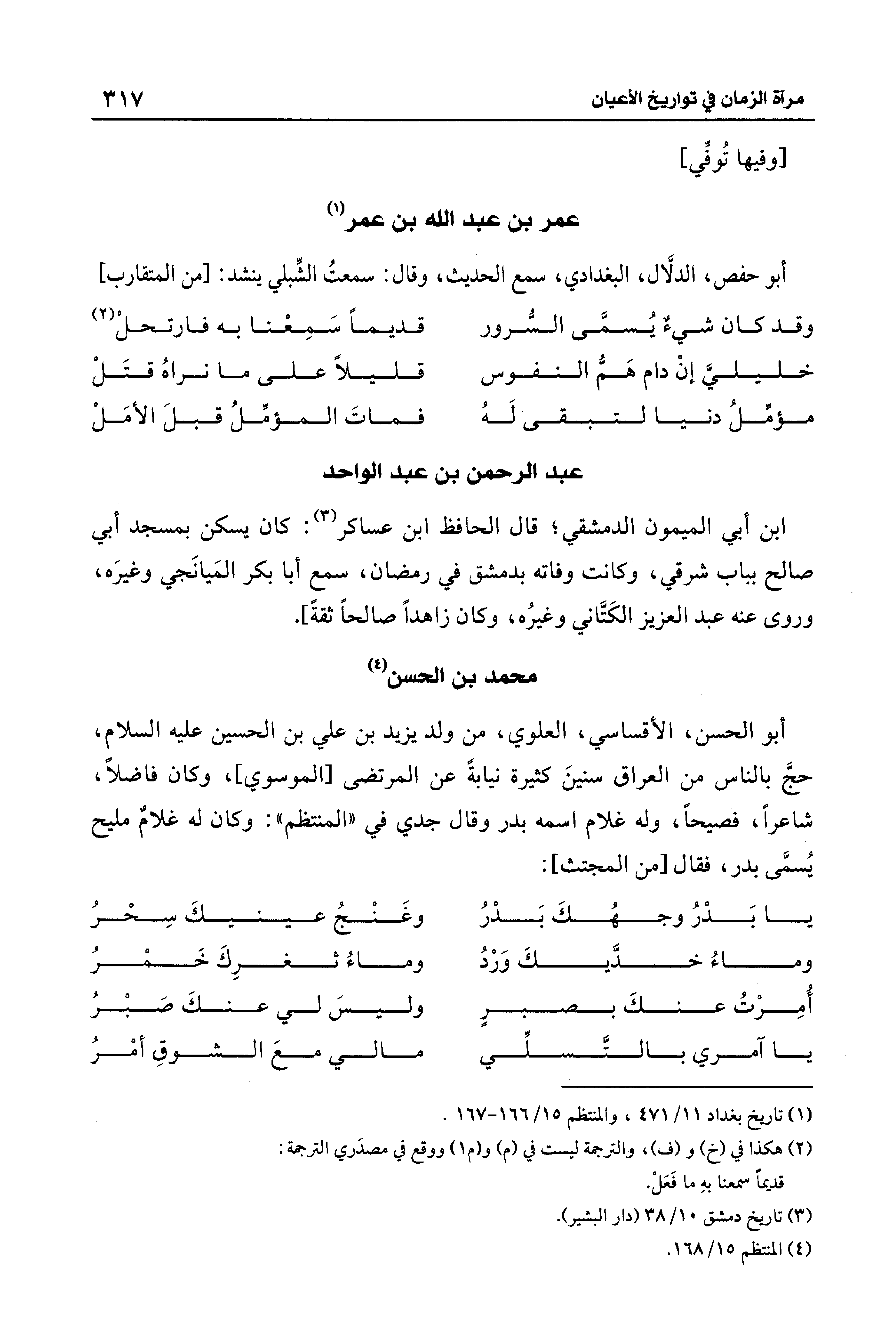(¬1) تاريخ بغداد 11/ 471، والمنتظم 15/ 166 - 167.