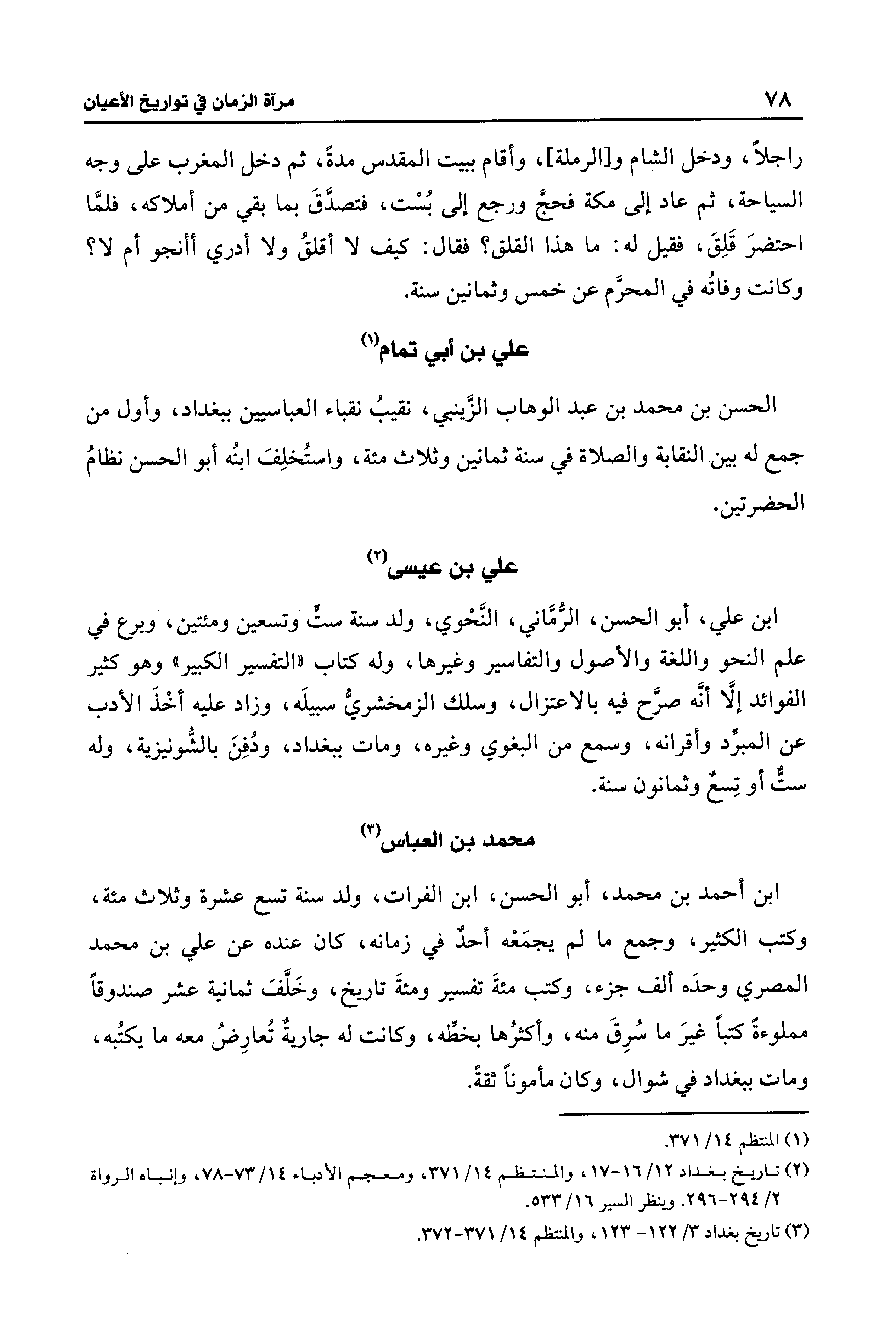 (¬3) تاريخ بغداد 3/ 122 - 123، والمنتظم 14/ 371 - 372.