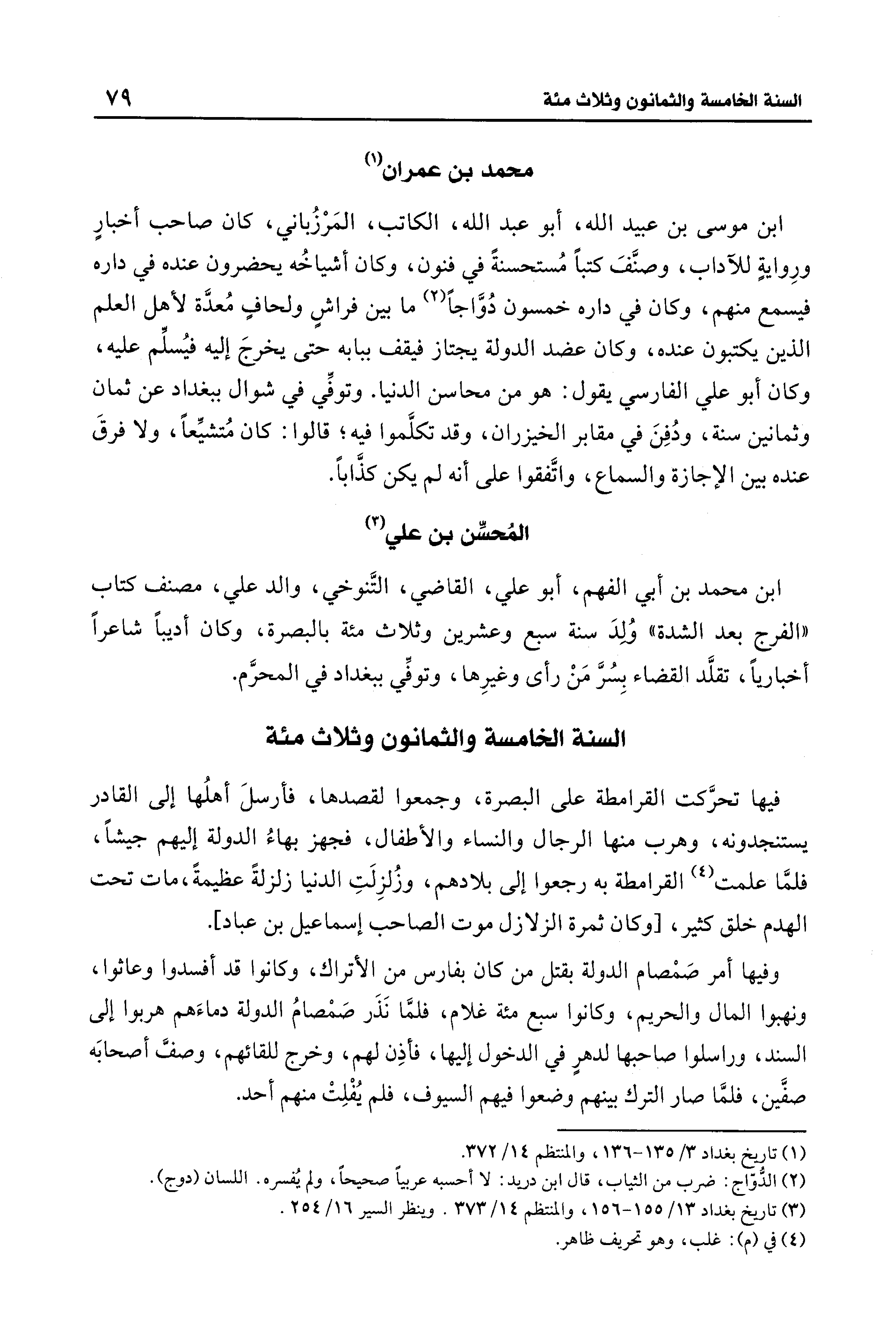 (¬1) تاريخ بغداد 3/ 135 - 136، والمنتظم 14/ 372.