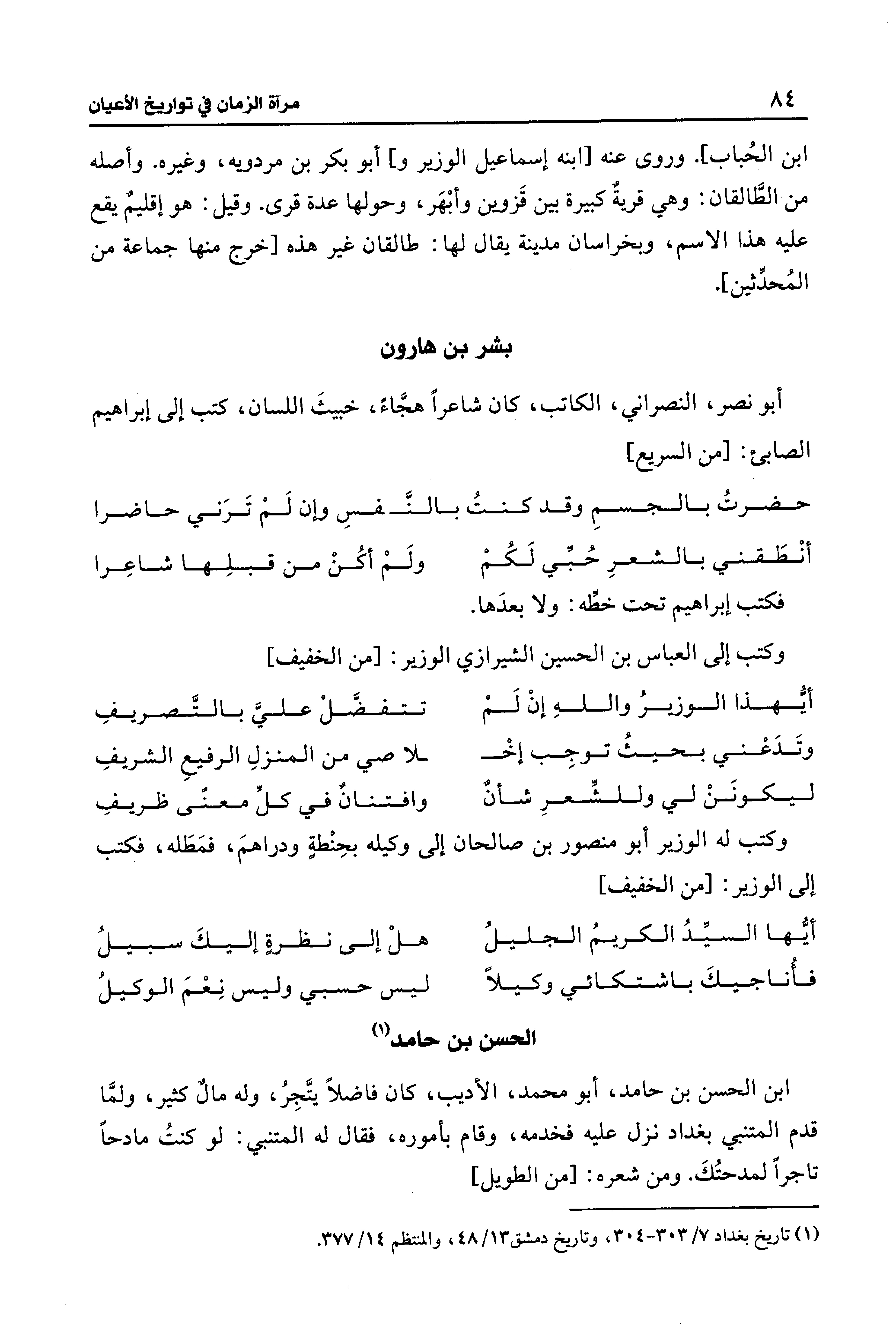 (¬1) تاريخ بغداد 7/ 303 - 304، وتاريخ دمشق 13/ 48، والمنتظم 14/ 377.