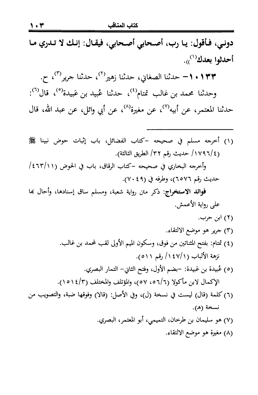 10133 - حدّثنا الصغاني، حدّثنا زهير (¬1)، حدّثنا جرير (¬2)، ح.