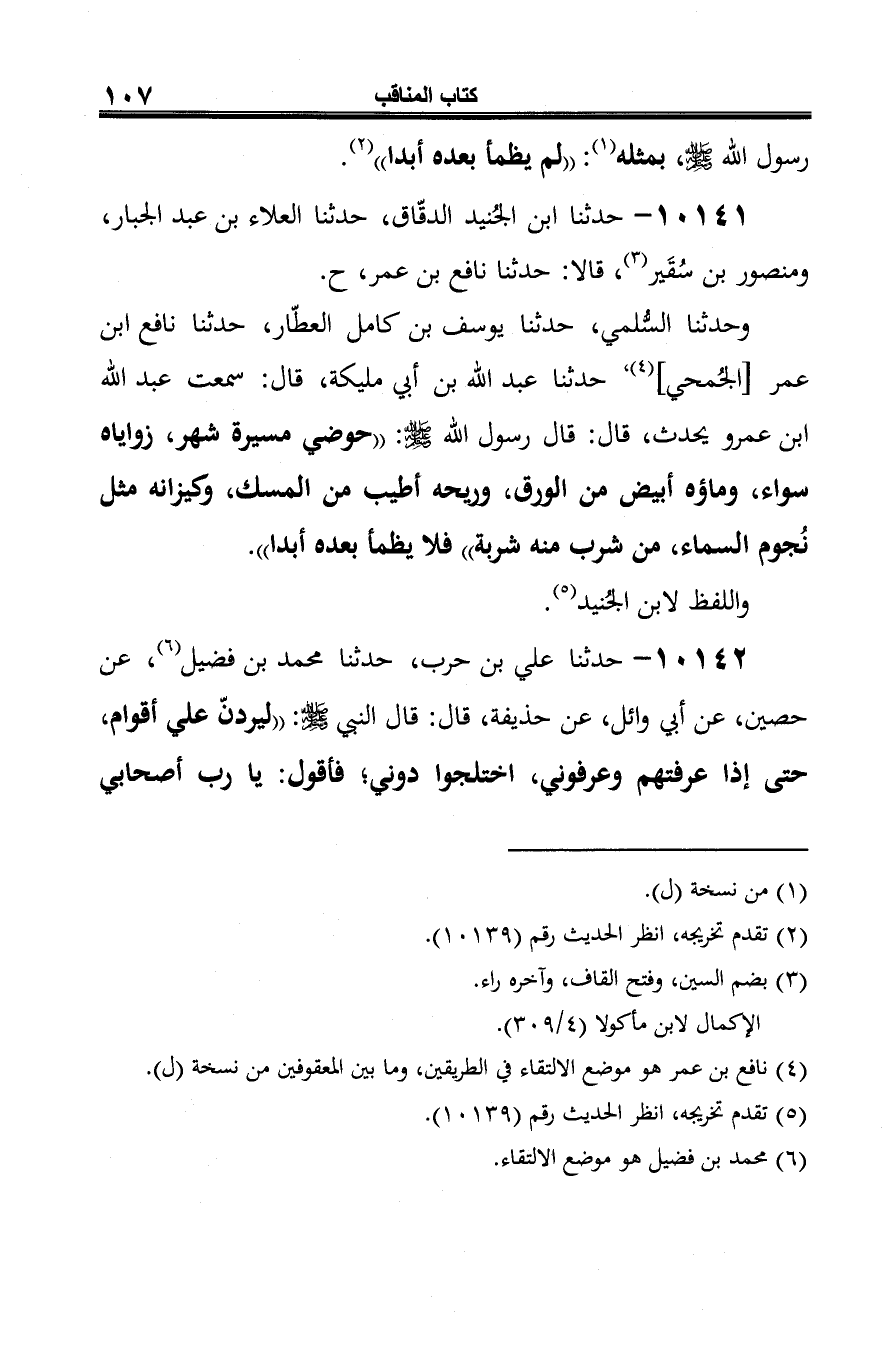 (¬2) أخرجه مسلم في صحيحه -كتاب الفضائل، باب إثبات حوض نبيّنا -صلى الله عليه وسلم- (4/ 1797/ حديث رقم 32 / الطريق الرّابع). ولم يذكر متنه.