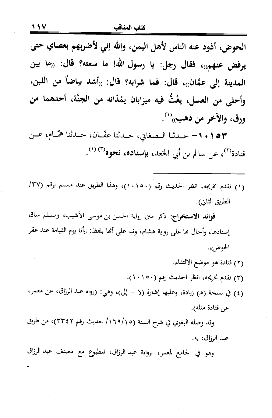 (¬3) في نسخة (هـ) زيادة، وعليها إشارة (لا- إلى)، وهي: (رواه عبد الرزّاق، عن معمر، عن قتادة مثله).
