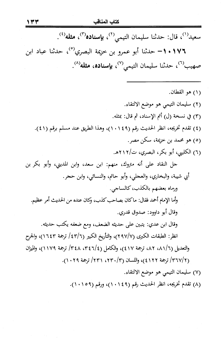 10176 - حدّثنا أبو عمرو بن خزيمة البصري (¬1)، حدّثنا عباد ابن صهيب (¬2)، حدّثنا سليمان التيمي (¬3)، بإسناده، مثله (¬4).