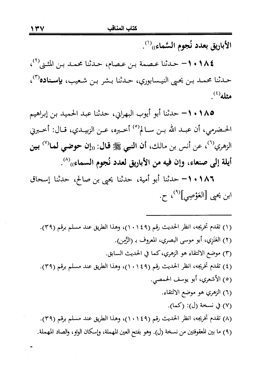 10184 - حدثنا عصمة بن عصام، حدثنا محمّد بن المثنى (¬1) حدثنا محمّد بن يحيى النيسابوري، حدّثنا بشر بن شعيب، بإسناده (¬2) مثله (¬3).