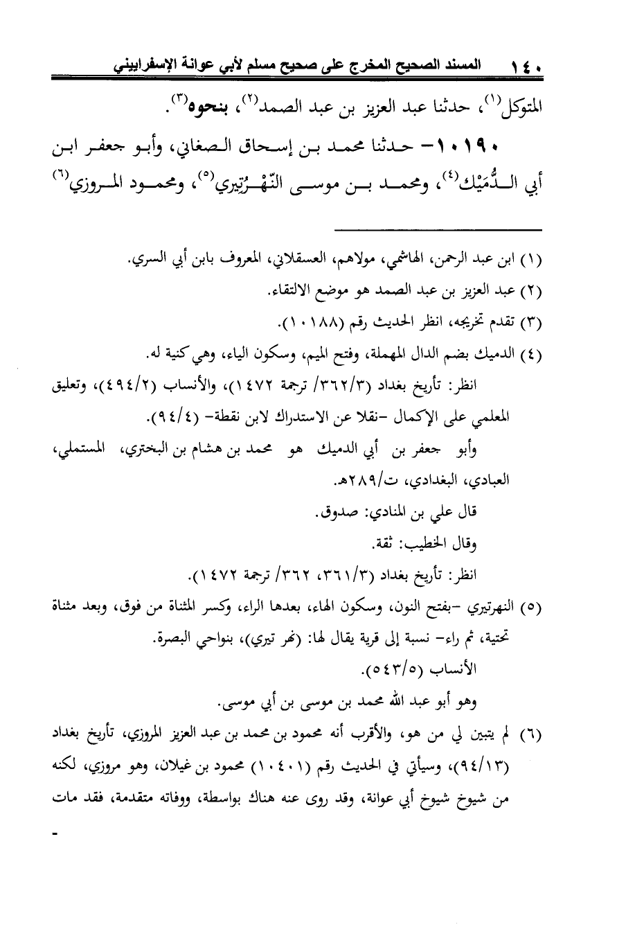 10190 - حدّثنا محمّد بن إسحاق الصغاني، وأبو جعفر ابن أبي الدُّمَيْك (¬1)، ومحمد بن موسى النّهْرُتِيري (¬2)، ومحمود المروزي (¬3)