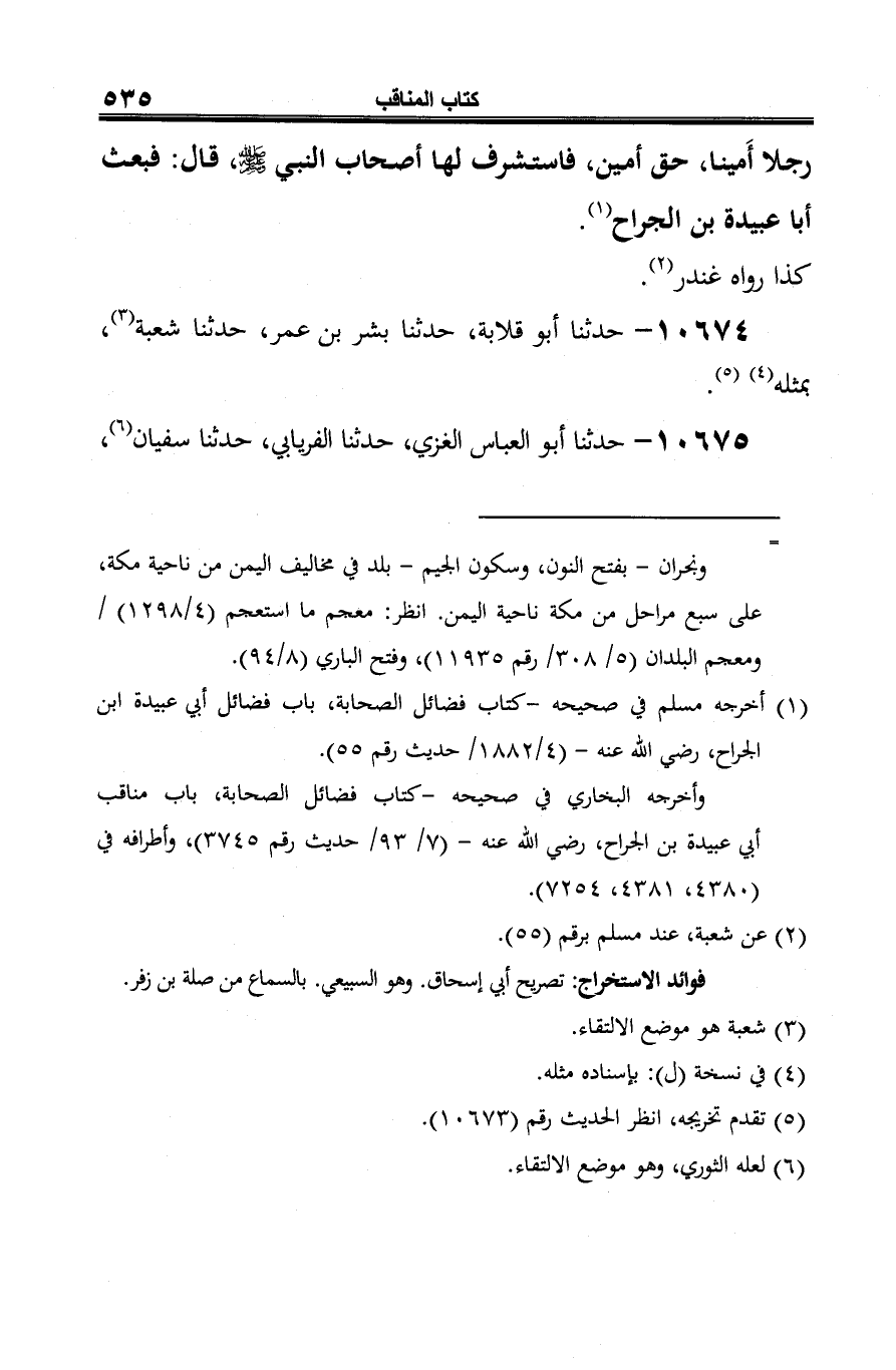 -[536]- عن أبي إسحاق، عن صلة بن زفَر، عن حُذيفَة، قال: أتى السيّد (¬2) والعاقب (¬3)، صاحبا نجران إلى رسول الله -صلى الله عليه وسلم-، فقالا: يا رسول الله، أبعث معنا رجلًا أمينا، حق أمين، فقال النبي -صلى الله عليه وسلم-: "لأبعثن معكما رجلًا أمينا حق أمين"، فاستشرف لها أصحاب محمَّد -صلى الله عليه وسلم-، فقال النبي -صلى الله عليه وسلم-: "قم يا أبا عُبيدة" (¬4).