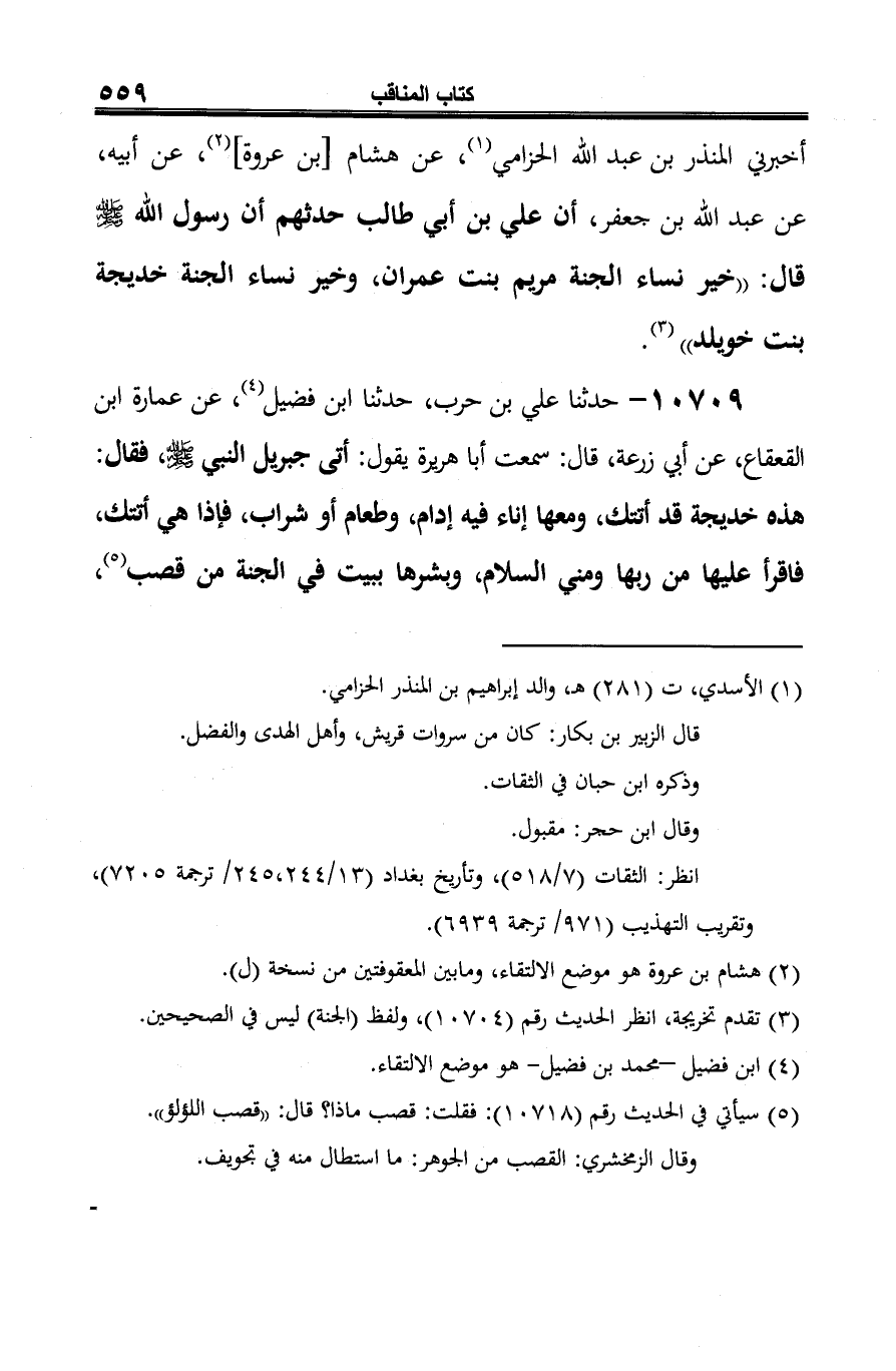 (¬5) أخرجه مسلم في صحيحه -كتاب فضائل الصحابة, باب فضائل خديجة أم المؤمنين، رضي الله عنها- (4/ 1887/ حديث رقم 71).