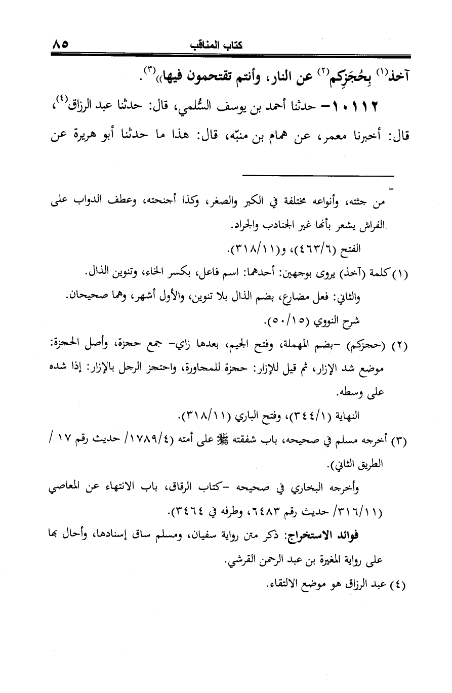 10112 - حدّثنا أحمد بن يوسف السُّلمي، قال: حدّثنا عبد الرزّاق (¬1)، قال: أخبرنا معمر، عن همام بن منبّه، قال: هذا ما حدّثنا أبو هريرة عن