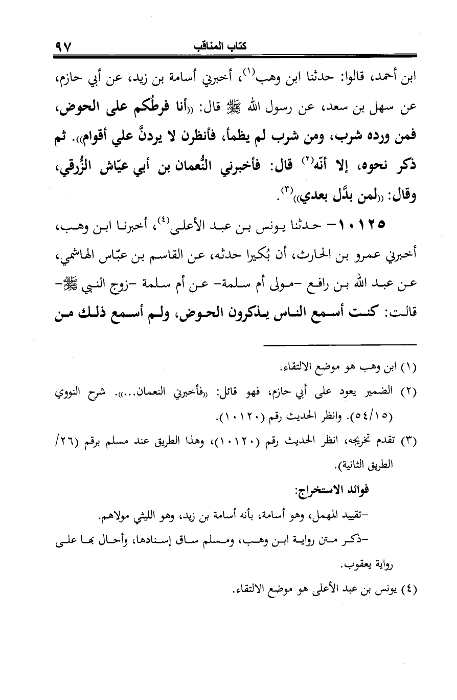 10125 - حدّثنا يونس بن عبد الأعلى (¬1)، أخبرنا ابن وهب، أخبرني عمرو بن الحارث، أن بُكيرا حدثه، عن القاسم بن عبّاس الهاشمي، عن عبد الله بن رافع -مولى أم سلمة- عن أم سلمة - زوج النبي -صلى الله عليه وسلم- قالت: كنت أسمع النَّاس يذكرون الحوض، ولم أسمع ذلك من