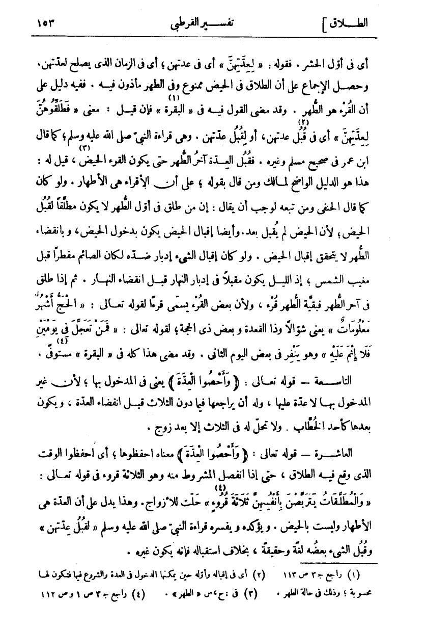 أَيْ فِي أَوَّلِ الْحَشْرِ. فَقَوْلُهُ: لِعِدَّتِهِنَّ أَيْ فِي عِدَّتِهِنَّ، أَيْ فِي الزَّمَانِ الَّذِي يَصْلُحُ لِعِدَّتِهِنَّ. وَحَصَلَ الْإِجْمَاعُ عَلَى أَنَّ الطَّلَاقَ فِي الْحَيْضِ مَمْنُوعٌ وَفِي الطُّهْرِ مَأْذُونٌ فِيهِ. فَفِيهِ دَلِيلٌ عَلَى أَنَّ الْقُرْءَ هُوَ الطُّهْرُ. وَقَدْ مَضَى الْقَوْلُ فِيهِ فِي" الْبَقَرَةِ" «١» فَإِنْ قِيلَ: مَعْنَى فَطَلِّقُوهُنَّ لِعِدَّتِهِنَّ أَيْ فِي قُبُلِ «٢» عِدَّتِهِنَّ، أَوْ لِقُبُلِ عِدَّتِهِنَّ. وَهِيَ قِرَاءَةُ النَّبِيِّ صَلَّى اللَّهُ عَلَيْهِ وَسَلَّمَ، كَمَا قَالَ ابْنُ عُمَرَ فِي صَحِيحِ مُسْلِمٍ وَغَيْرِهِ. فَقُبُلُ الْعِدَّةِ آخِرُ الطُّهْرِ حَتَّى يَكُونَ الْقُرْءُ الْحَيْضَ «٣»، قِيلَ لَهُ: هَذَا هُوَ الدَّلِيلُ الْوَاضِحُ لِمَالِكٍ وَمَنْ قَالَ بِقَوْلِهِ، عَلَى أَنَّ الْأَقْرَاءَ هِيَ الْأَطْهَارُ. وَلَوْ كَانَ كَمَا قَالَ الْحَنَفِيُّ وَمَنْ تَبِعَهُ لَوَجَبَ أَنْ يُقَالَ: إِنَّ مَنْ طَلَّقَ فِي أَوَّلِ الطُّهْرِ لَا يَكُونُ مُطَلِّقًا لِقُبُلِ الْحَيْضِ، لِأَنَّ الْحَيْضَ لَمْ يُقْبِلْ بَعْدُ. وَأَيْضًا إِقْبَالُ الْحَيْضِ يَكُونُ بِدُخُولِ الْحَيْضِ، وَبِانْقِضَاءِ الطُّهْرِ لَا يَتَحَقَّقُ إِقْبَالُ الْحَيْضِ. وَلَوْ كَانَ إِقْبَالُ الشَّيْءِ إِدْبَارَ ضِدِّهِ لَكَانَ الصَّائِمُ مُفْطِرًا قَبْلَ مَغِيبِ الشَّمْسِ، إِذِ اللَّيْلُ يَكُونُ مُقْبِلًا فِي إِدْبَارِ النَّهَارِ قَبْلَ انْقِضَاءِ النَّهَارِ. ثُمَّ إِذَا طَلَّقَ فِي آخِرِ الطُّهْرِ فَبَقِيَّةُ الطُّهْرِ قُرْءٌ، وَلِأَنَّ بَعْضَ الْقُرْءِ يُسَمَّى قُرْءًا لِقَوْلِهِ تَعَالَى: الْحَجُّ أَشْهُرٌ مَعْلُوماتٌ [البقرة: ١٩٧] يَعْنِي شَوَّالًا وَذَا الْقَعْدَةِ وَبَعْضَ ذِي الْحِجَّةِ، لِقَوْلِهِ تَعَالَى: فَمَنْ تَعَجَّلَ فِي يَوْمَيْنِ فَلا إِثْمَ عَلَيْهِ [البقرة: ٢٠٣] وَهُوَ يَنْفِرُ فِي بَعْضِ الْيَوْمِ الثَّانِي. وَقَدْ مَضَى هَذَا كُلُّهُ فِي" الْبَقَرَةِ" مُسْتَوْفًى «٤». التَّاسِعَةُ- قَوْلُهُ تَعَالَى: (وَأَحْصُوا الْعِدَّةَ) يَعْنِي فِي الْمَدْخُولِ بِهَا، لِأَنَّ غَيْرَ الْمَدْخُولِ بِهَا لَا عِدَّةَ عَلَيْهَا، وَلَهُ أَنْ يُرَاجِعَهَا فِيمَا دُوِّنَ الثَّلَاثِ قَبْلَ انْقِضَاءِ الْعِدَّةِ، وَيَكُونُ بَعْدَهَا كَأَحَدِ الْخُطَّابِ. وَلَا تَحِلُّ لَهُ فِي الثَّلَاثِ إِلَّا بَعْدَ زَوْجٍ. الْعَاشِرَةُ- قَوْلُهُ تَعَالَى: وَأَحْصُوا الْعِدَّةَ مَعْنَاهُ احْفَظُوهَا، أَيِ احْفَظُوا الْوَقْتَ الَّذِي وَقَعَ فِيهِ الطَّلَاقُ، حَتَّى إِذَا انْفَصَلَ الْمَشْرُوطُ مِنْهُ وَهُوَ الثَّلَاثَةُ قُرُوءٍ فِي قَوْلِهِ تَعَالَى: وَالْمُطَلَّقاتُ يَتَرَبَّصْنَ بِأَنْفُسِهِنَّ ثَلاثَةَ قُرُوءٍ «٥» [البقرة: ٢٢٨] حَلَّتْ لِلْأَزْوَاجِ. وَهَذَا يَدُلُّ عَلَى أَنَّ الْعِدَّةَ هِيَ الْأَطْهَارُ وَلَيْسَتْ بِالْحَيْضِ. وَيُؤَكِّدُهُ وَيُفَسِّرُهُ قِرَاءَةُ النَّبِيِّ صَلَّى اللَّهُ عَلَيْهِ وَسَلَّمَ" لِقُبُلِ عِدَّتِهِنَّ" وَقُبُلُ الشَّيْءِ بَعْضُهُ لُغَةً وَحَقِيقَةً، بِخِلَافِ اسْتِقْبَالِهِ فإنه يكون غيره.
