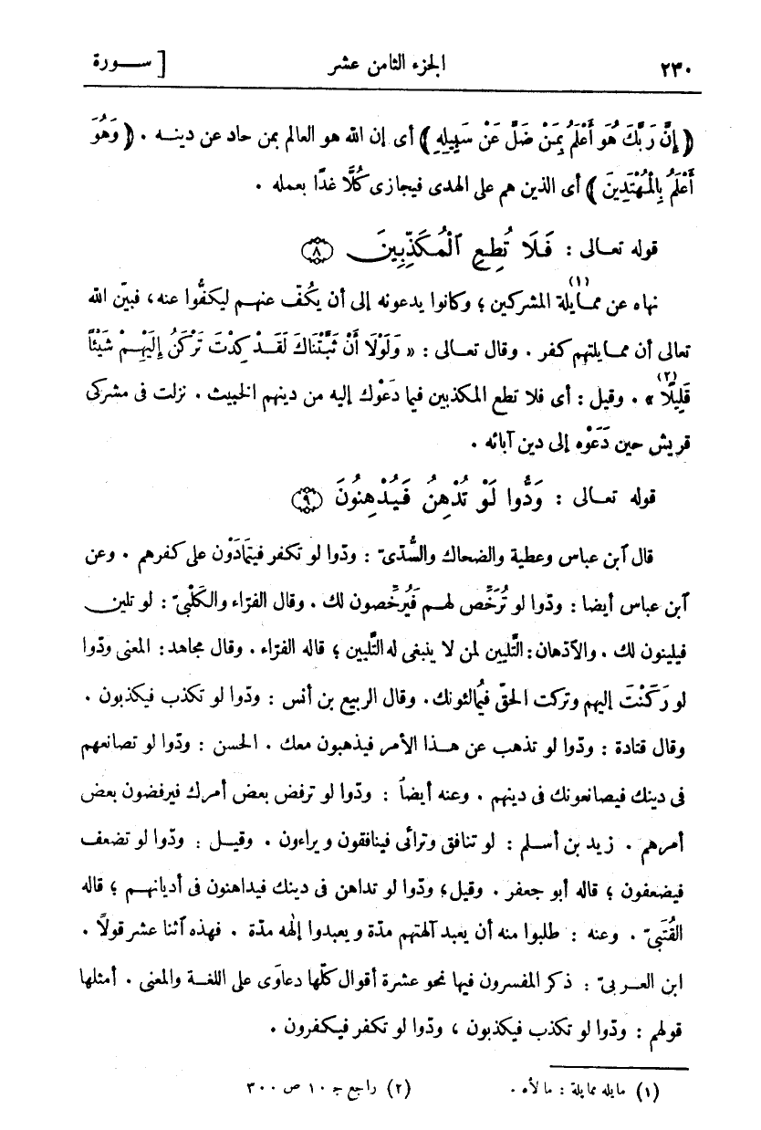 فَلا تُطِعِ الْمُكَذِّبِينَ (٨)