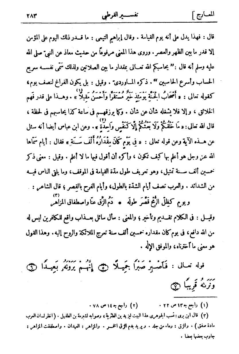 فَاصْبِرْ صَبْراً جَمِيلاً (٥) إِنَّهُمْ يَرَوْنَهُ بَعِيداً (٦) وَنَراهُ قَرِيباً (٧)