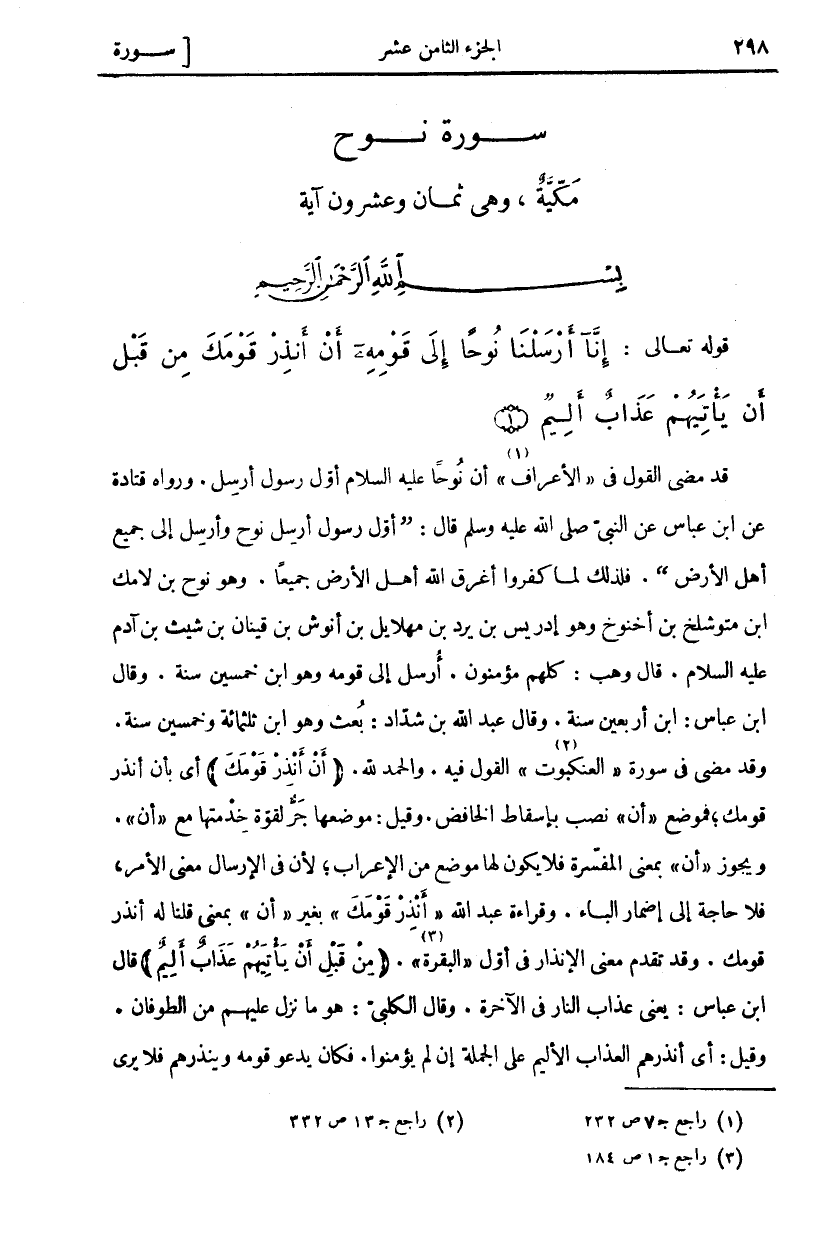 إِنَّا أَرْسَلْنا نُوحاً إِلى قَوْمِهِ أَنْ أَنْذِرْ قَوْمَكَ مِنْ قَبْلِ أَنْ يَأْتِيَهُمْ عَذابٌ أَلِيمٌ (١)