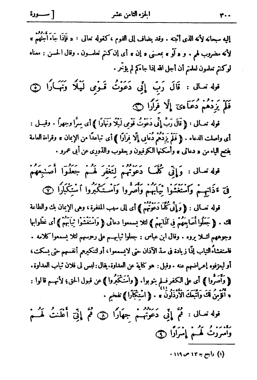 ثُمَّ إِنِّي دَعَوْتُهُمْ جِهاراً (٨) ثُمَّ إِنِّي أَعْلَنْتُ لَهُمْ وَأَسْرَرْتُ لَهُمْ إِسْراراً (٩)