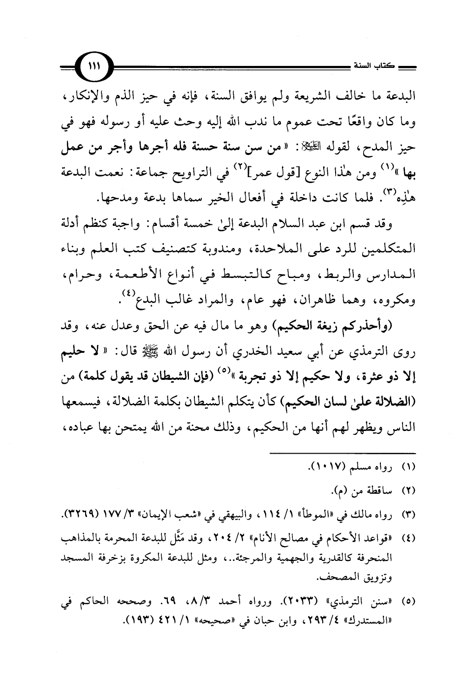(¬4) "قواعد الأحكام في مصالح الأنام" 2/ 204، وقد مَثل للبدعة المحرمة بالمذاهب المنحرفة كالقدرية والجهمية والمرجئة. .، ومثل للبدعة المكروهة بزخرفة المسجد وتزويق المصحف.