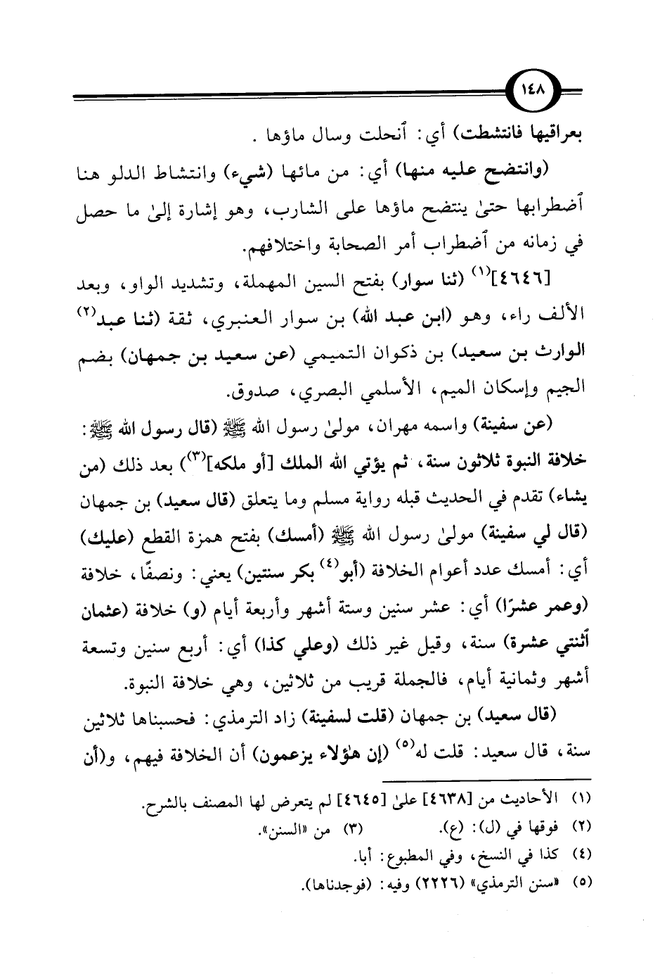 (قال سعيد) بن جمهان (قلت لسفينة) زاد الترمذي: فحسبناها ثلاثين سنة، قال سعيد: قلت له (¬5) (إن هؤلاء يزعمون) أن الخلافة فيهم، و (أن