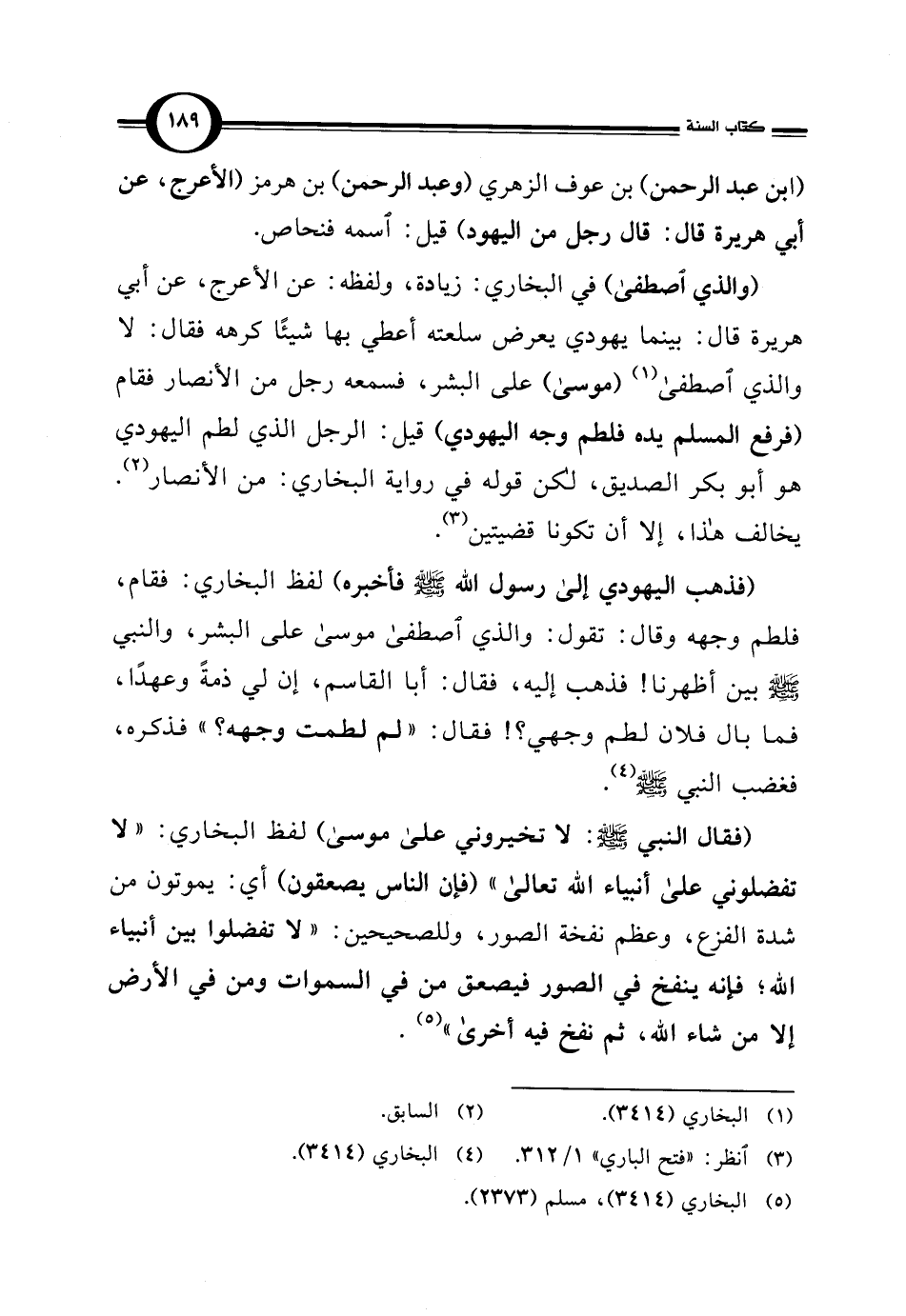 (والذي اصطفى) في البخاري: زيادة، ولفظه: عن الأعرج، عن أبي هريرة قال: بينما يهودي يعرض سلعته أعطي بها شيئًا كرهه فقال: لا والذي اصطفى (¬1) (موسى) على البشر، فسمعه رجل من الأنصار فقام (فرفع المسلم يده فلطم وجه اليهودي) قيل: الرجل الذي لطم اليهودي هو أبو بكر الصديق، لكن قوله في رواية البخاري: من الأنصار (¬2). يخالف هذا، إلا أن تكونا قضيتين (¬3).