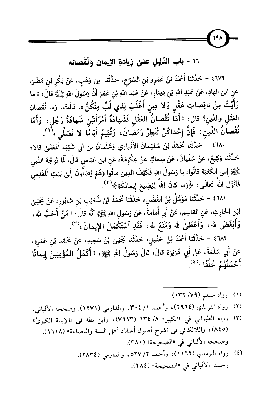16 - باب الدَّلِيلِ عَلى زِيادَةِ الإِيمانِ وَنُقْصانِهِ