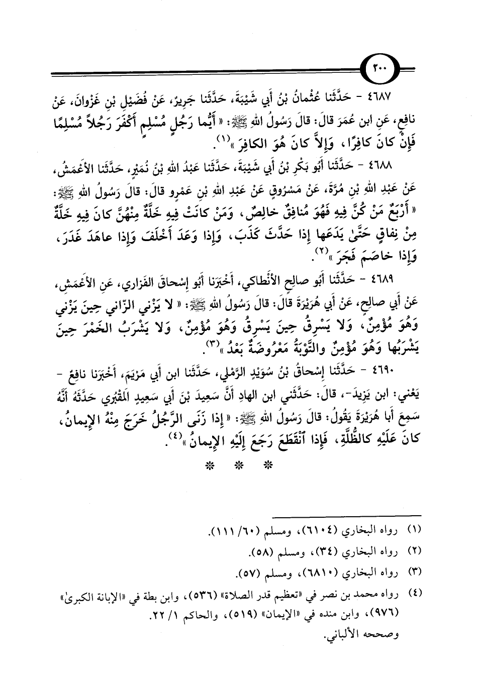 (¬4) رواه محمد بن نصر في "تعظيم قدر الصلاة" (536)، وابن بطة في "الإبانة الكبرى" (976)، وابن منده في "الإيمان" (519)، والحاكم 1/ 22.