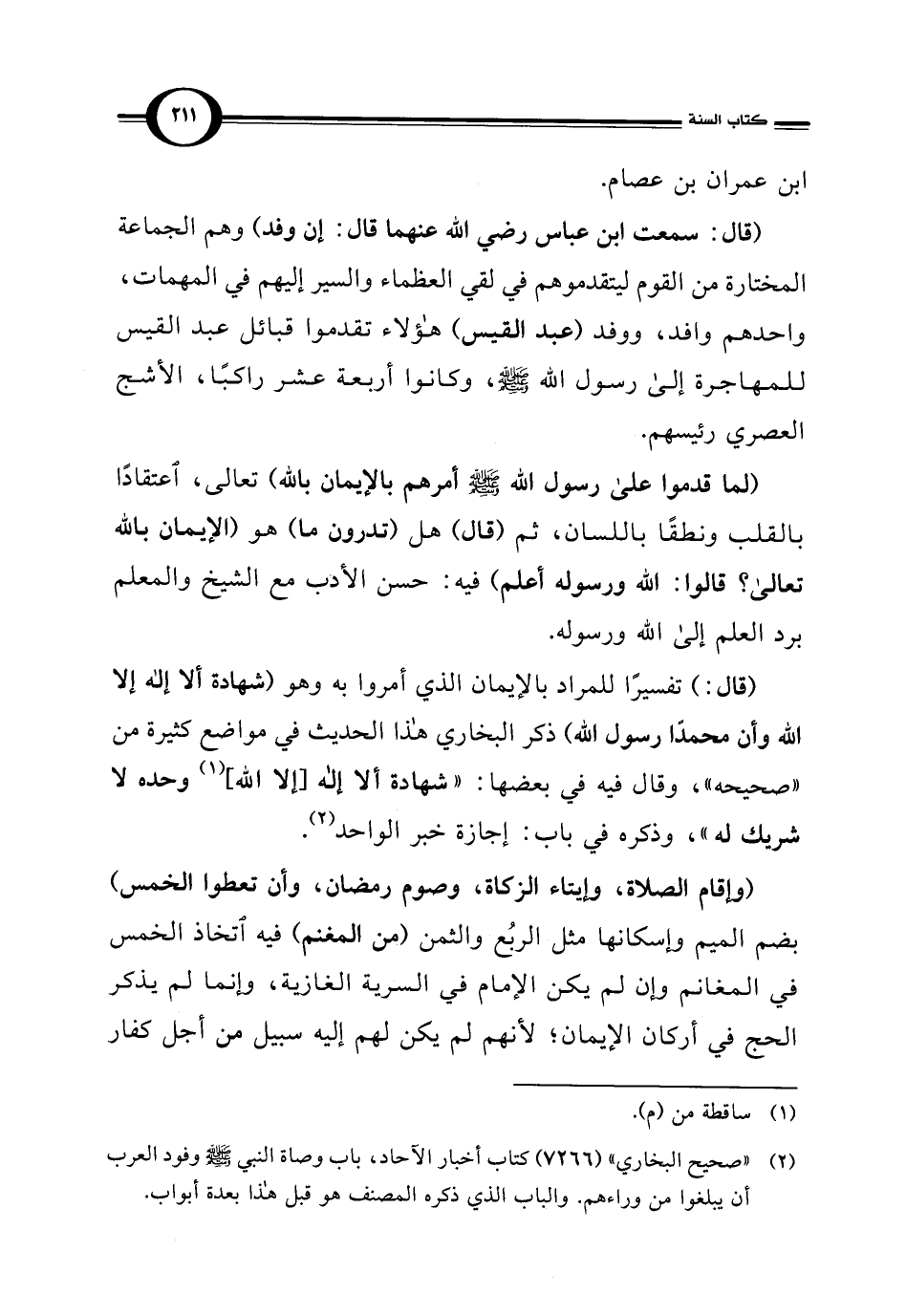 (¬2) "صحيح البخاري" (7266) كتاب أخبار الآحاد، باب وصاة النبي -صلى اللَّه عليه وسلم- وفود العرب أن يبلغوا من وراءهم. والباب الذي ذكره المصنف هو قبل هذا بعدة أبواب.