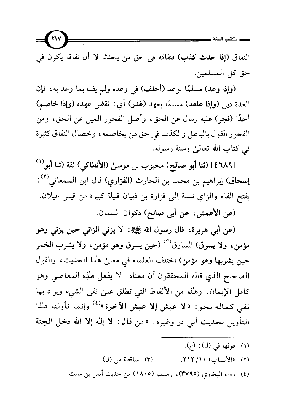 [4689] (ثنا أبو صالح) محبوب بن موسى (الأنطاكي) ثقة (ثنا أبو (¬1) إسحاق) إبراهيم بن محمد بن الحارث (الفزاري) قال ابن السمعاني (¬2): بفتح الفاء والزاي نسبة إلى فزارة بن ذبيان قبيلة كبيرة من قيس عيلان.