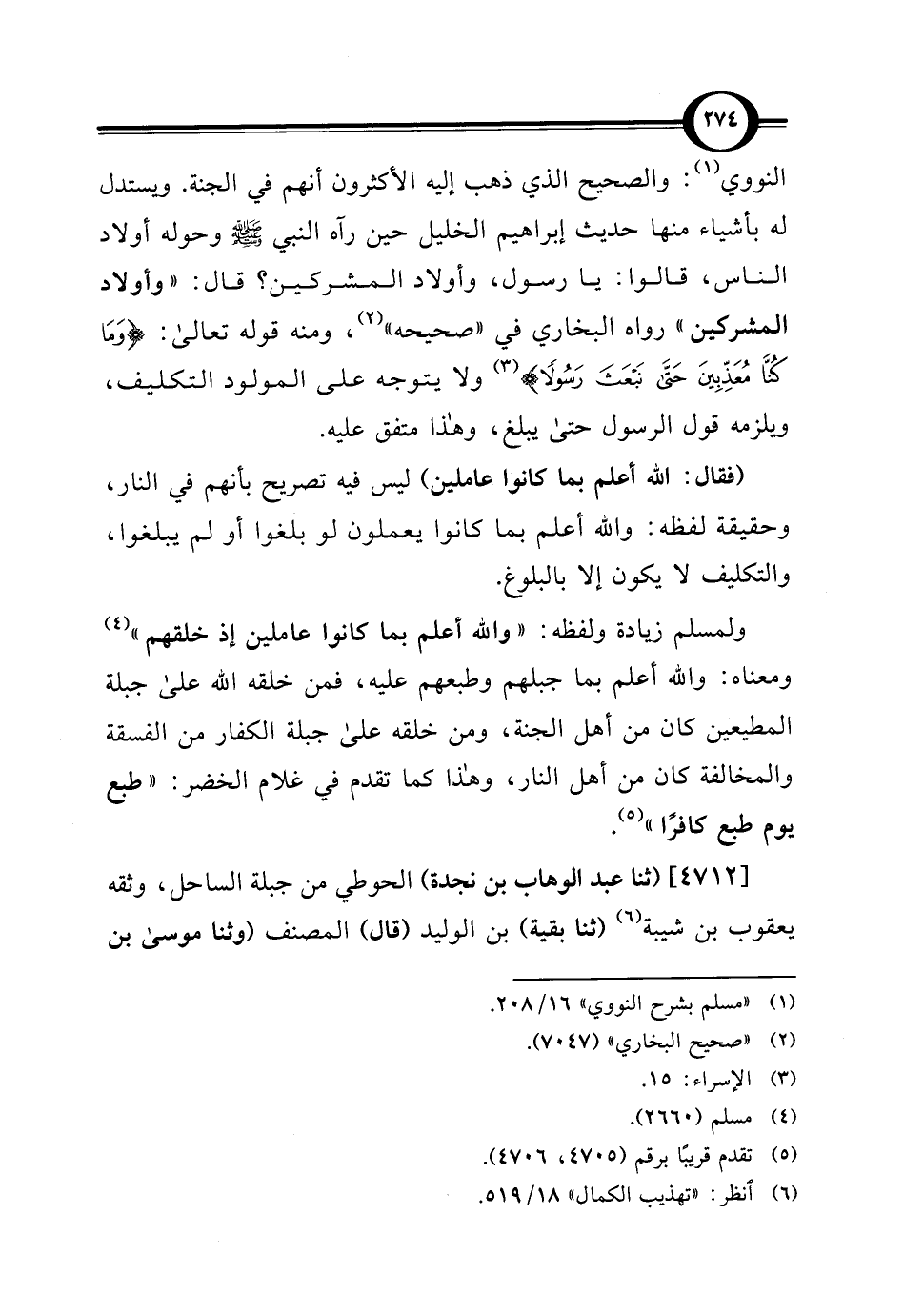 (فقال: اللَّه أعلم بما كانوا عاملين) ليس فيه تصريح بأنهم في النار، وحقيقة لفظه: واللَّه أعلم بما كانوا يعملون لو بلغوا أو لم يبلغوا، والتكليف لا يكون إلا بالبلوغ.