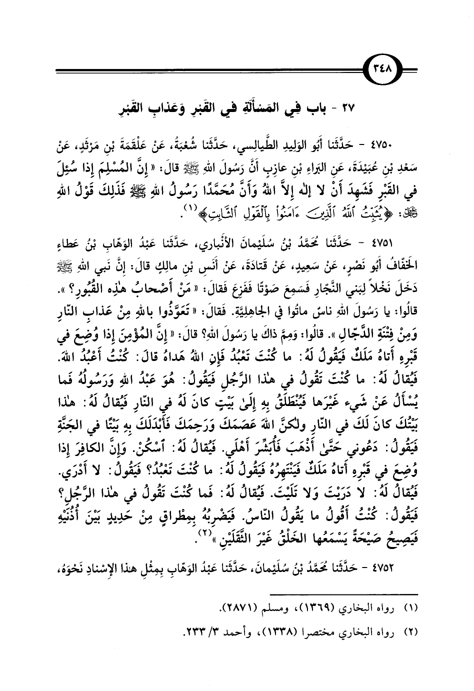 27 - باب فِي المَسْأَلَةِ في القَبْرِ وَعذابِ القَبْرِ