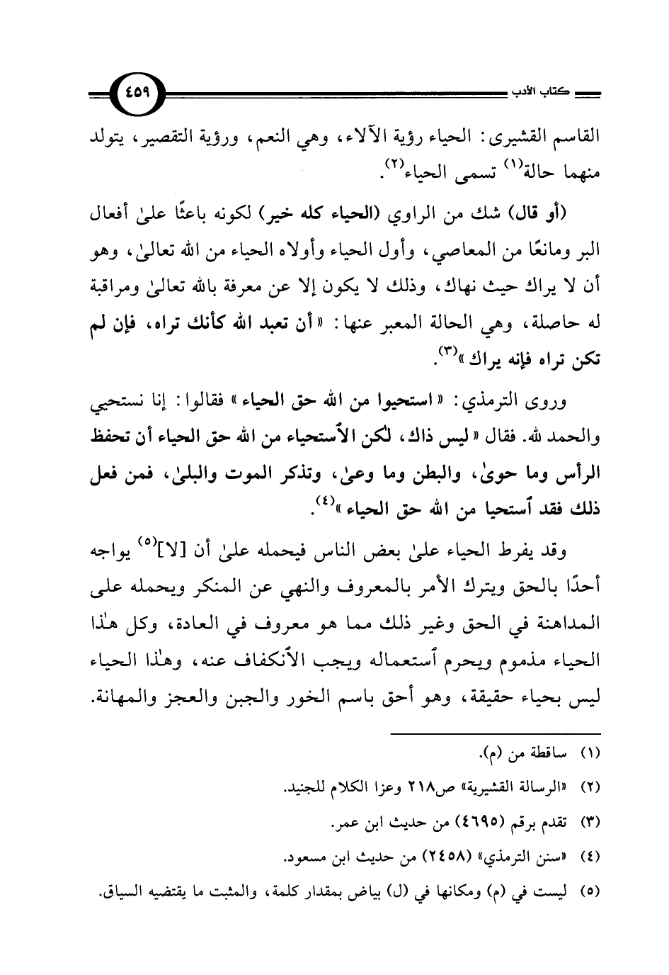 (¬2) "الرسالة القشيرية" ص 218 وعزا الكلام للجنيد.