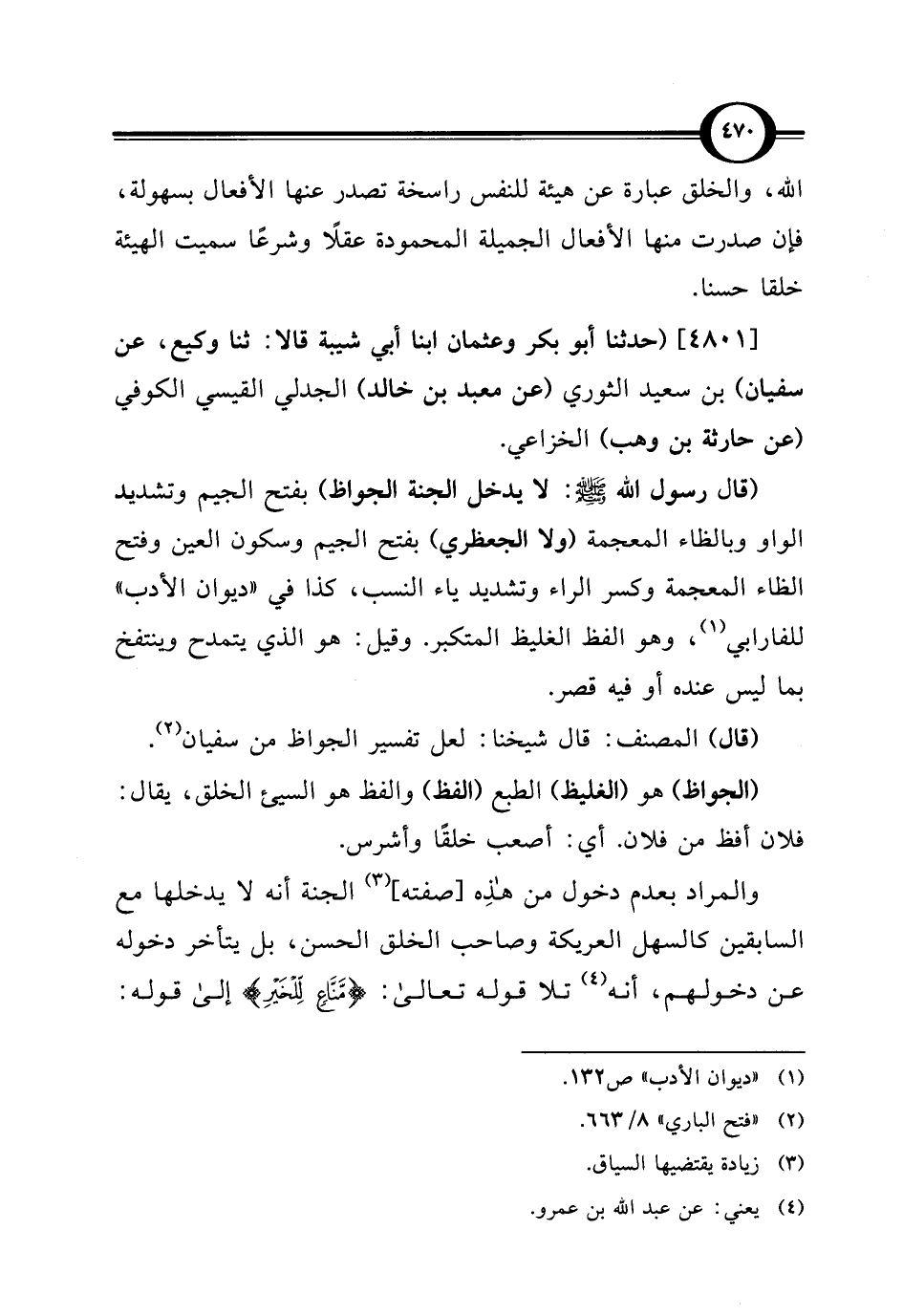 (قال) المصنف: قال شيخنا: لعل تفسير الجواظ من سفيان (¬2).