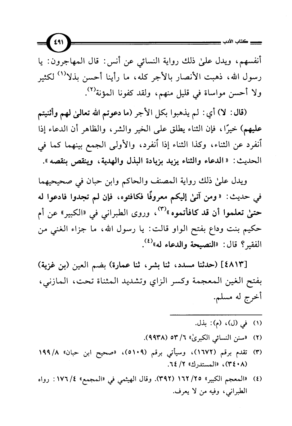[4813] (حدثنا مسدد، ثنا بشر، ثنا عمارة) بضم العين (بن غزية) بفتح الغين المعجمة وكسر الزاي وتشديد المثناة تحت، المازني، أخرج له مسلم.