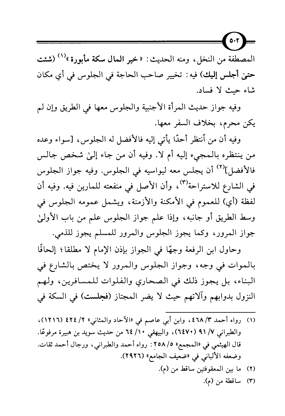 وفيه أن من انتظر أحدًا يأتي إليه فالأفضل له الجلوس، [سواء وعده من ينتظره بالمجيء إليه أم لا. وفيه أن من جاء إلى شخص جالس فالأفضل] (¬2) أن يجلس معه ليواسيه في الجلوس. وفيه جواز الجلوس في الشارع للاستراحة (¬3)، وأن الأصل في منفعته للمارين فيه. وفيه أن لفظة (أي) للعموم في الأمكنة والأزمنة، ويشمل عمومه الجلوس في وسط الطريق أو جانبه، وإذا علم جواز الجلوس علم من باب الأولى جواز المرور، وكما يجوز الجلوس والمرور للمسلم يجوز للذمي.