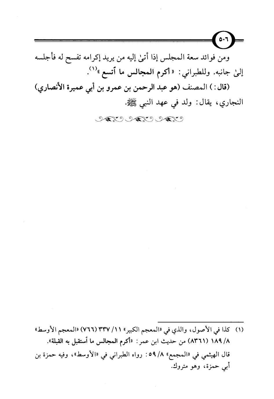(¬1) كذا في الأصول، والذي في "المعجم الكبير" 11/ 337 (766) "المعجم الأوسط" 8/ 189 (8361) من حديث ابن عمر: "أكرم المجالس ما استقبل به القبلة".